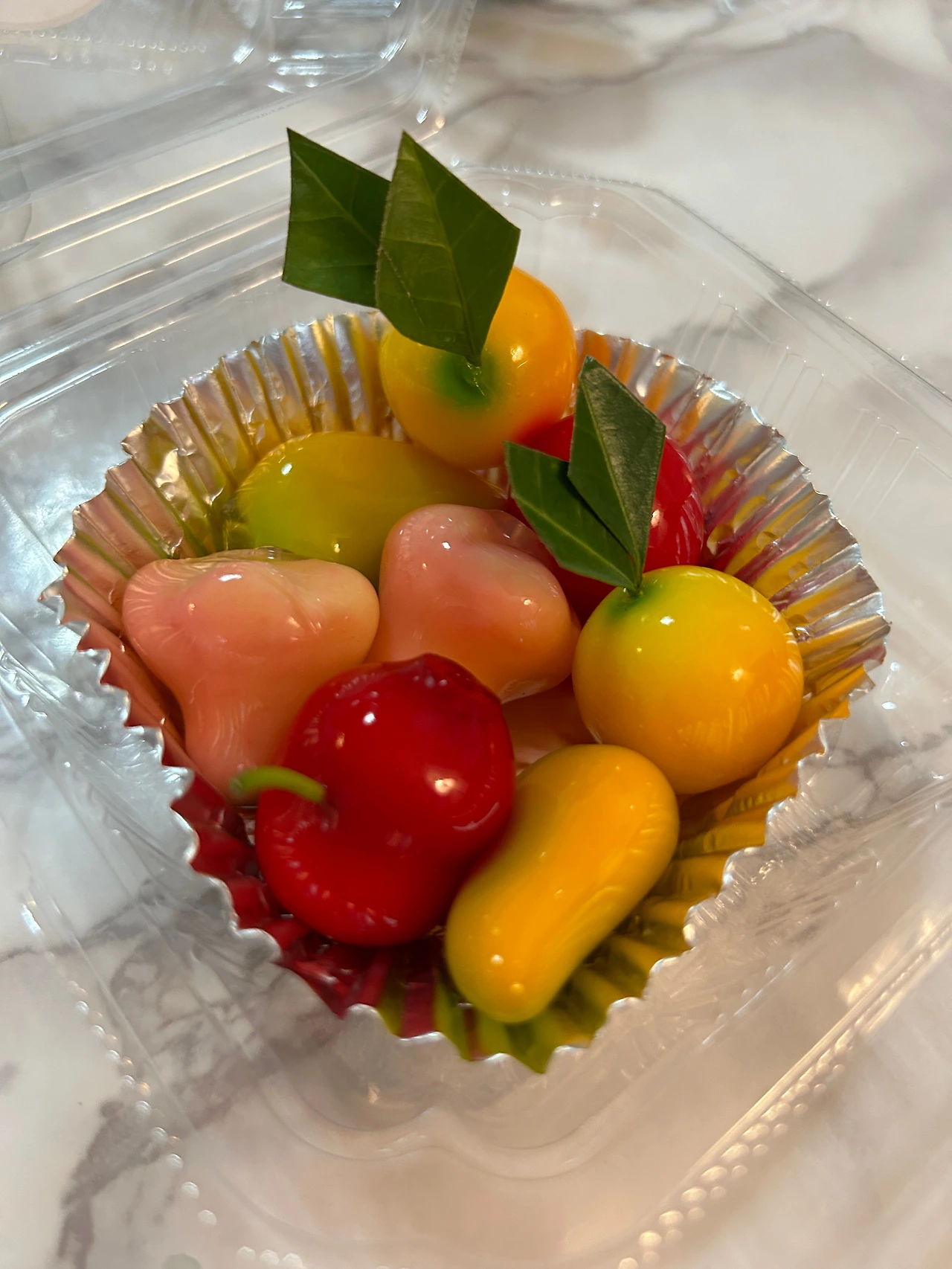알록달록 과일바구니 같은 이 녀석은 녹두앙금으로 속을 빚고 색소를 입혀 만든 것 같은데, 화려한 외관에 비해 그 맛은 수수할 정도로 평범하다. 이 디저트 역시 여러 군데에서 사 먹어 보았지만, 특별히 ‘이 집이 최고야!’ 하는 차이는 발견하지 못했다. 하지만 한 상자 사서 식탁 위에 올려두기만 해도 기분이 좋아지거든요!