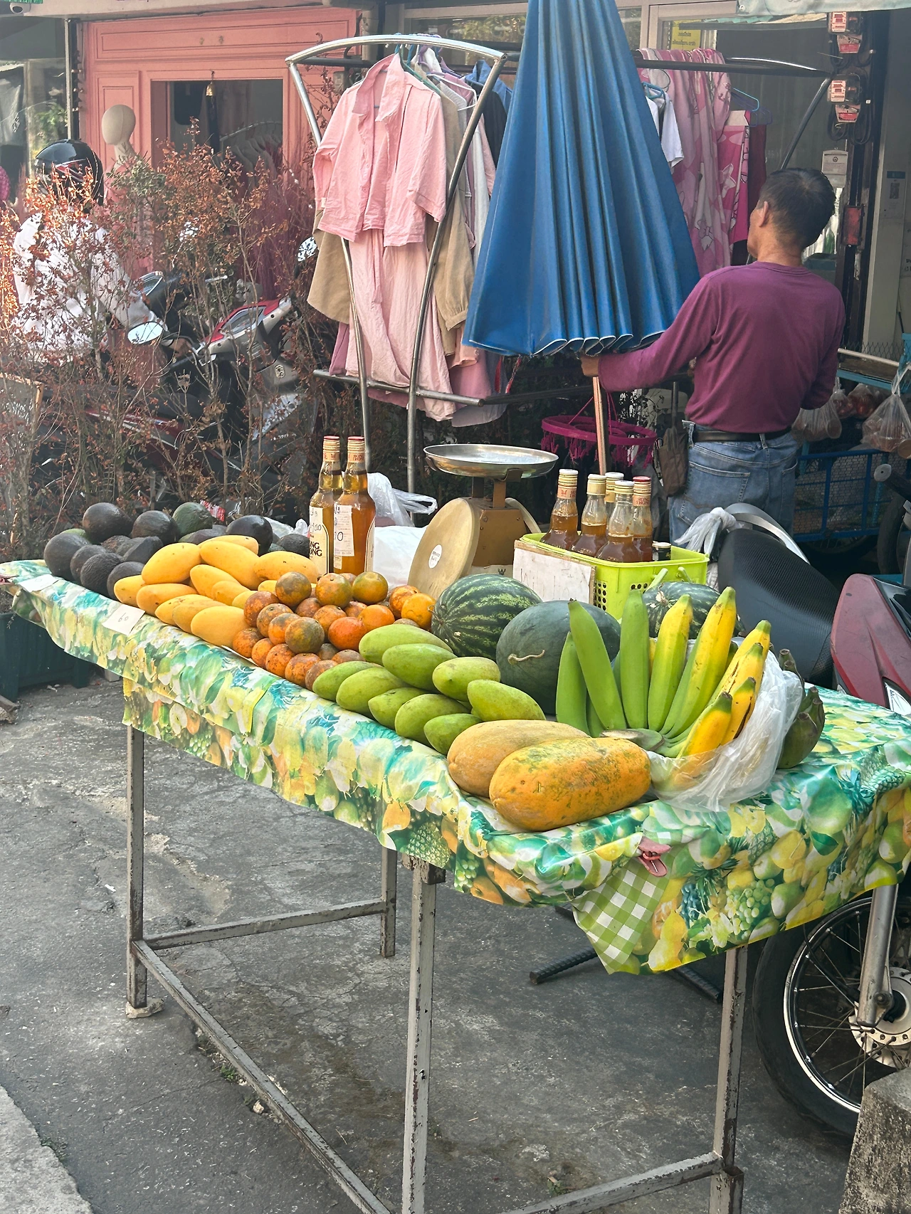 꽃은 오늘도 활짝 잎을 펼쳐 오늘의 태양빛을 맞이하고, 담벼락 앞에 나란히 세워진 오토바이들은 주인이 잠시 떠난 동안 따끈따끈한 낮잠을 잔다. 네모난 건물과 까만 전선들마저도, 한낮의 따스함을 담뿍담뿍 껴안은 정오. 지도를 보지 않아도, 걷다 보면 어느새 익숙한 식당 앞에 다다른다.