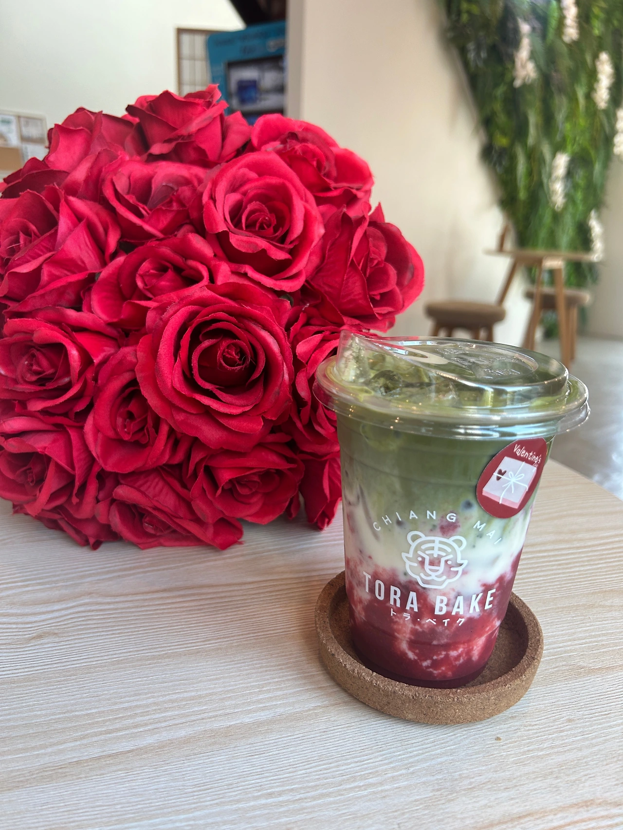 오늘 주문한 건 초록과 빨강이 이루는 보색의 조화가 경쾌한 마차딸기라떼. 이제는 서로가 눈에 익은 사장님이 음료를 내 탁자에 놓아주자마자 ‘꽃도 함께 즐기라’는 듯한 눈짓과 함께 어디선가 장미꽃다발을 가져왔다. 곧 다가올 밸런타인을 맞아 작은 카페는 온통 꽃장식 투성이. 개중 하나인 모조장미로 만든 장식일 뿐이지만, 비록 향은 없어도, 선뜻 꽃다발을 건네준 그 마음만은 더없이 투명한 진짜. 빨간 장미꽃잎에 물들어, 오후의 한 조각이 설레는 장밋빛으로 물들었다.