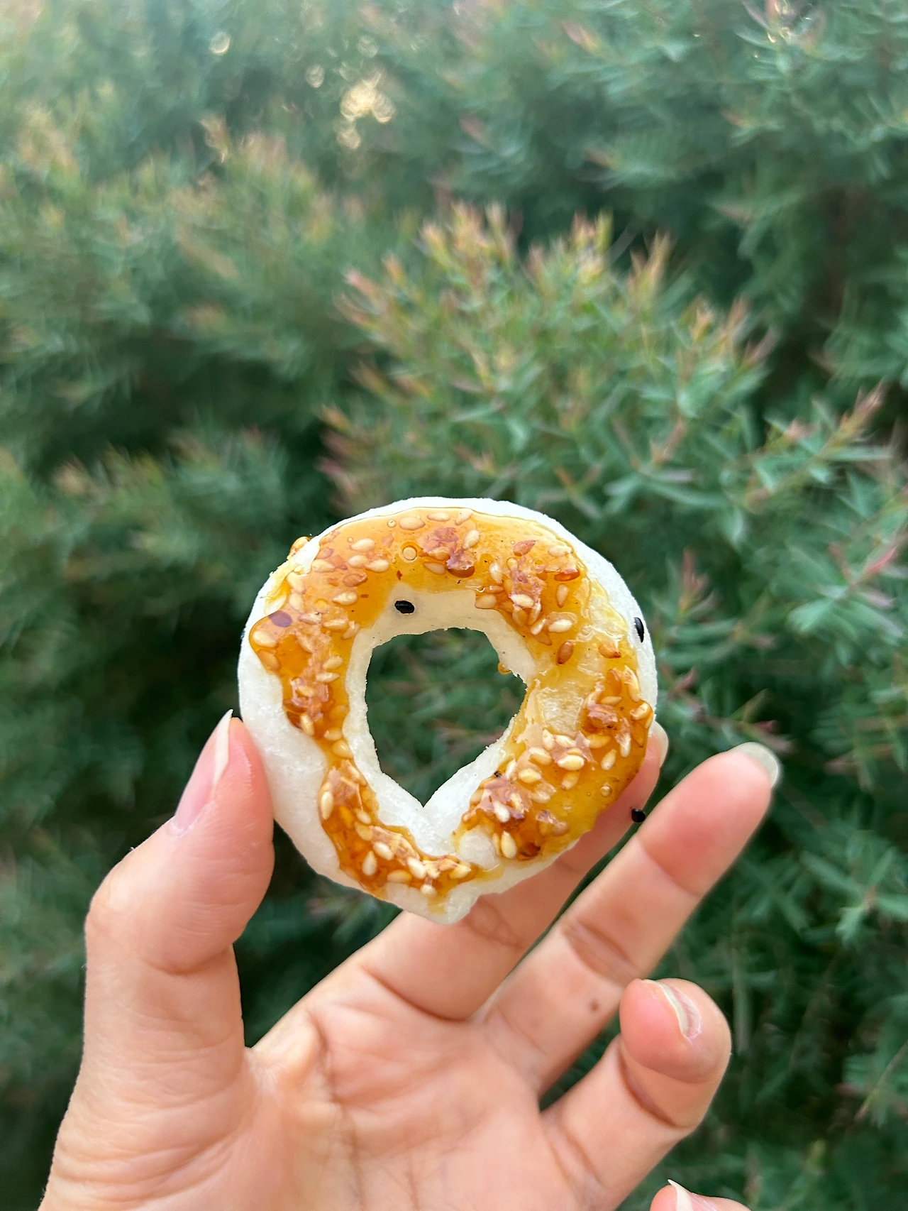 단골식당에서 나와 몇 걸음 걷다 보면 마주치게 되는 노란 차양의 도너츠가게는 어지러운 퍼즐 속에 애매하게 비어있는 한 자리를 채워 넣기 위해 오랫동안 찾아 헤맨 딱 들어맞는 조각과도 같은 존재! 알러지 때문에 밀가루와 유제품을 먹을 수 없게 된 후 어쩔 수 없이 내 인생의 퍼즐에서 ‘도넛’의 자리는 비워둘 수밖에 없었는데, 바로 옆 단골식당에서 기분 좋게 배를 채운 뒤에 나선 어느 오후의 산책길에서 ‘쌀가루로 만든 채식도넛’이라는 글귀를 발견하고 눈이 번쩍 뜨인 뒤론, 이 노란 차양 앞을 지날 때마다 그 자그마한 빈자리가 딱 맞는 도넛조각들로 빈틈없이 채워지고 있다.