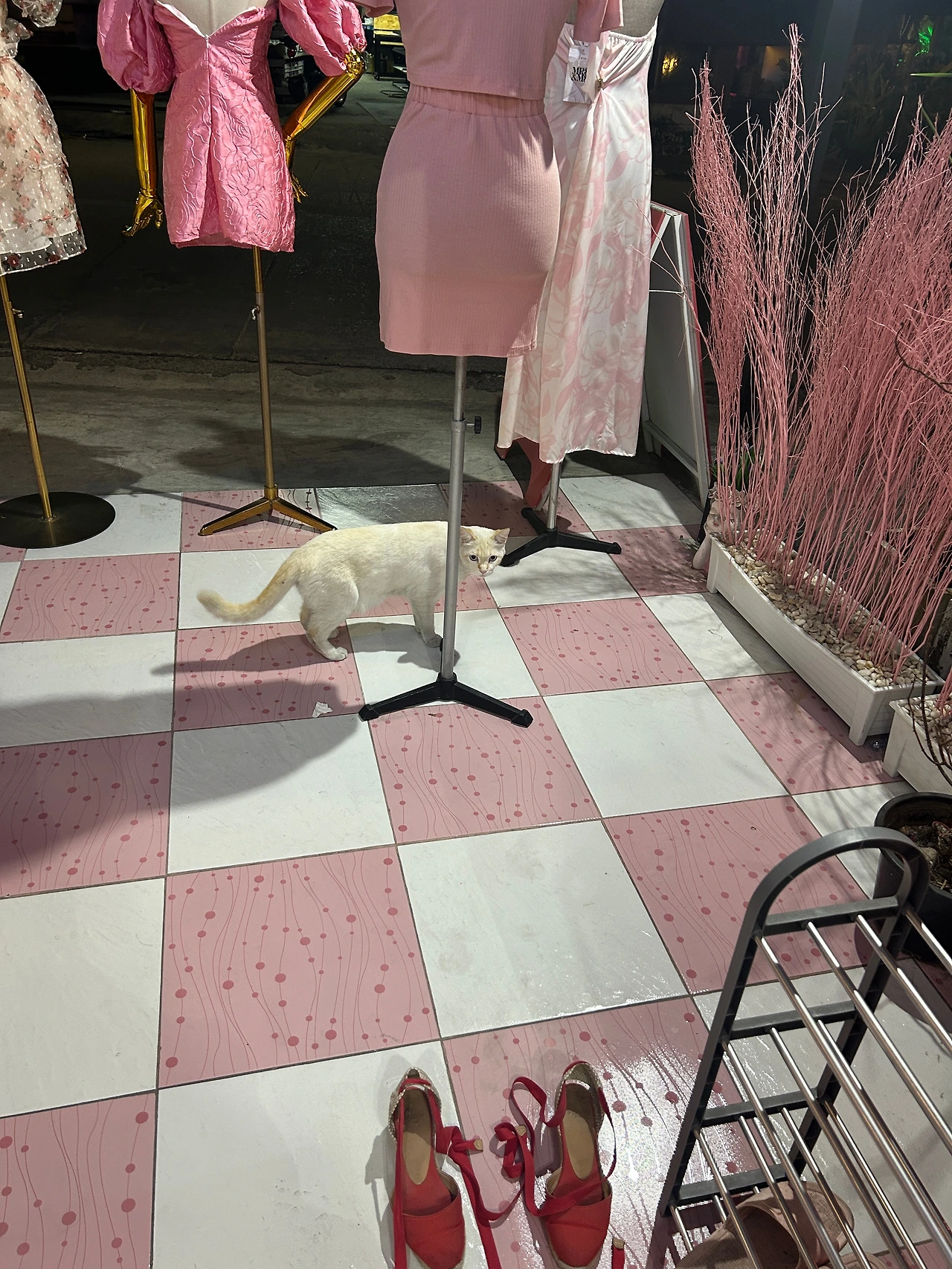 이제 하루가 더 지나면 더 이상 내 집이 아닐 집으로 돌아가는 길. 분홍색으로 가득한 동네 옷가게의 고사장님이 오늘도 발소리가 들리기 무섭게 하이얀 털을 뽐내며 쪼르르 마중을 나와주었다.