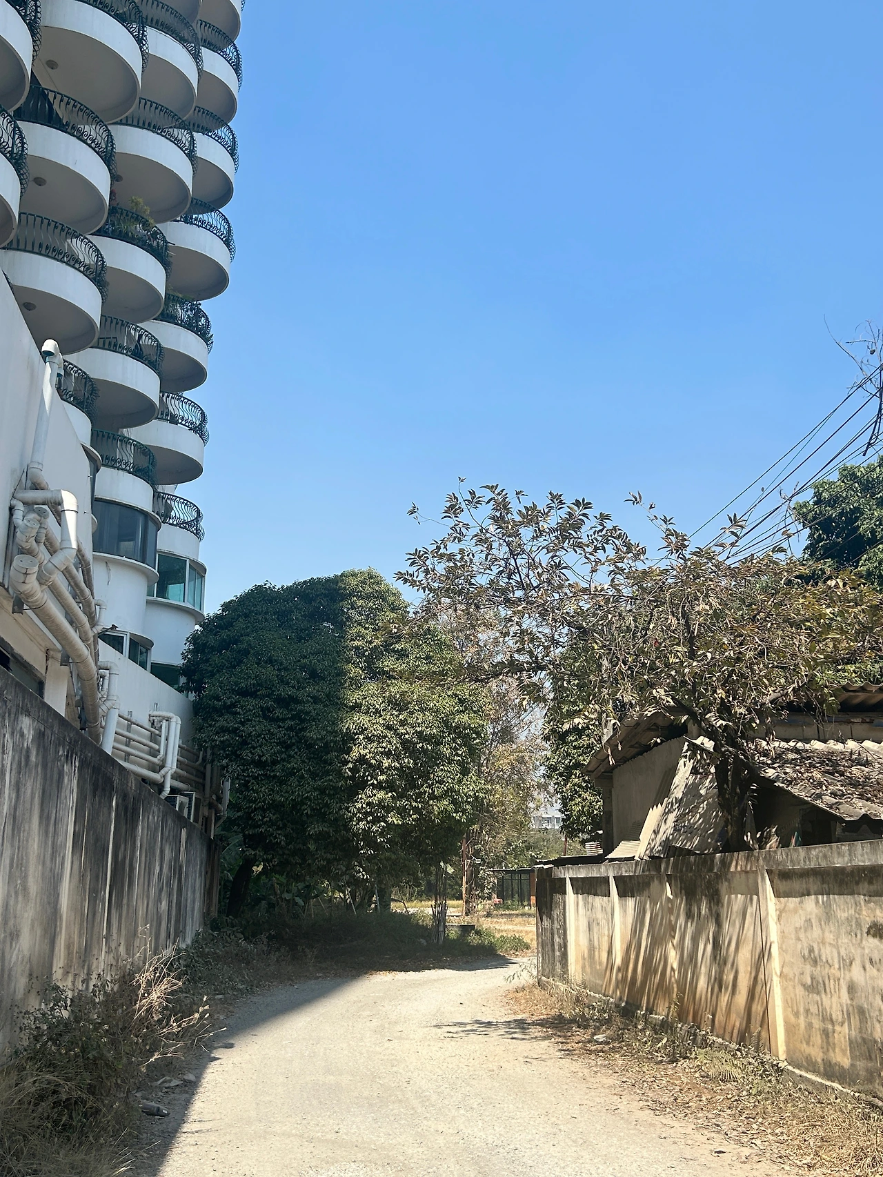 치앙마이에서 두 달간 이런저런 식당들을 돌아다녀보니, 가격이 좀 더 비싼 식당들은 대부분 비싼 그만큼 담아주는 양도 많다. 뻥 뚫린 동네식당들이 먹으면 딱 적당히 배가 차는 1인분을 내어준다면, 웨건을 세워두고 장사하는 노점들은 0.8인분, 에어컨이 있는 고급식당들은 1.2인분 정도를 내어준달까?