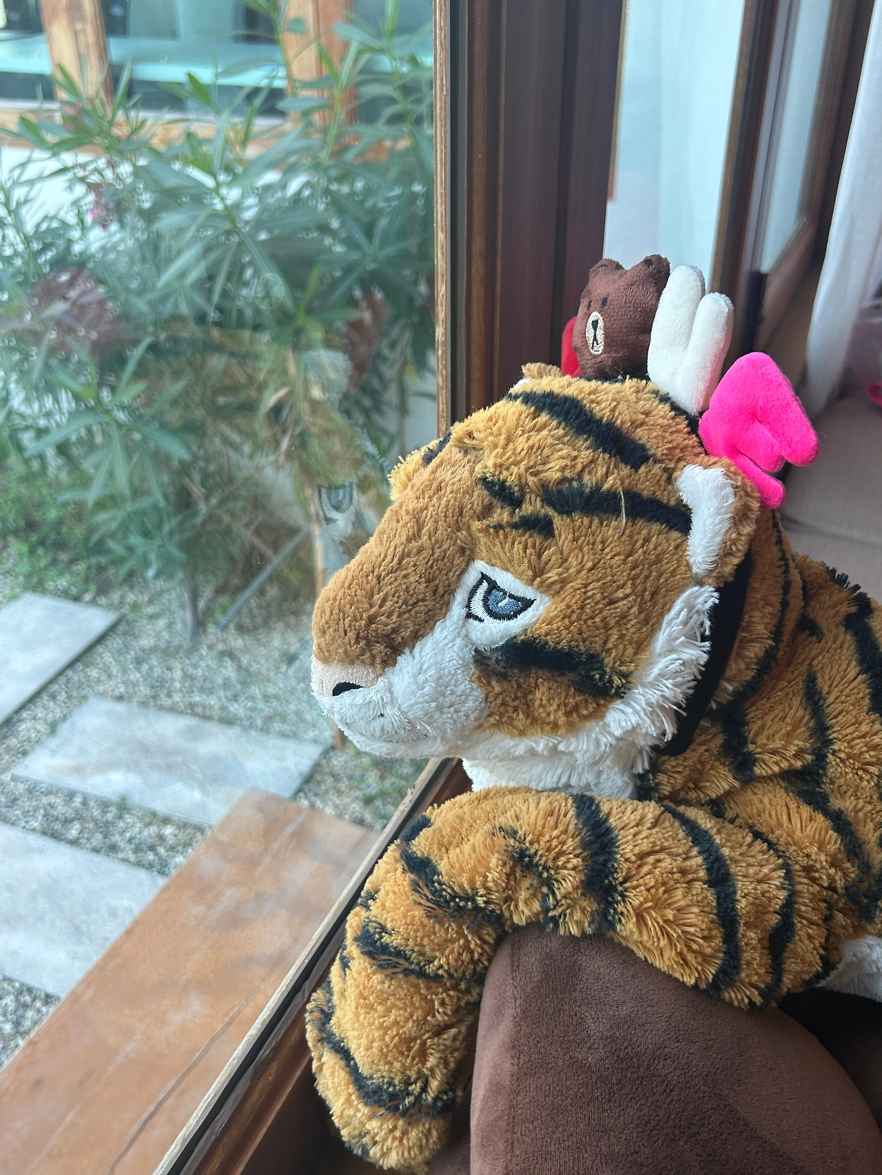 차를 마시며 바람이 잎사귀를 산들산들 흔들며 지나가는 여름의 풍경을 관조하다 보니 하루가 훌쩍 다 지나갔고, 처음 계획과는 정반대로 이후 근처 단골식당에서 점심을 먹은 뒤엔 으레 이 카페에 들러 터줏대감인 호랑이인형과 나란히 앉아 빈둥빈둥 차 한 잔 비우며 창밖에 흘러가는 시간 따라 신선놀음 한 판 하는 것이 나만의 작은 의례가 되었다.