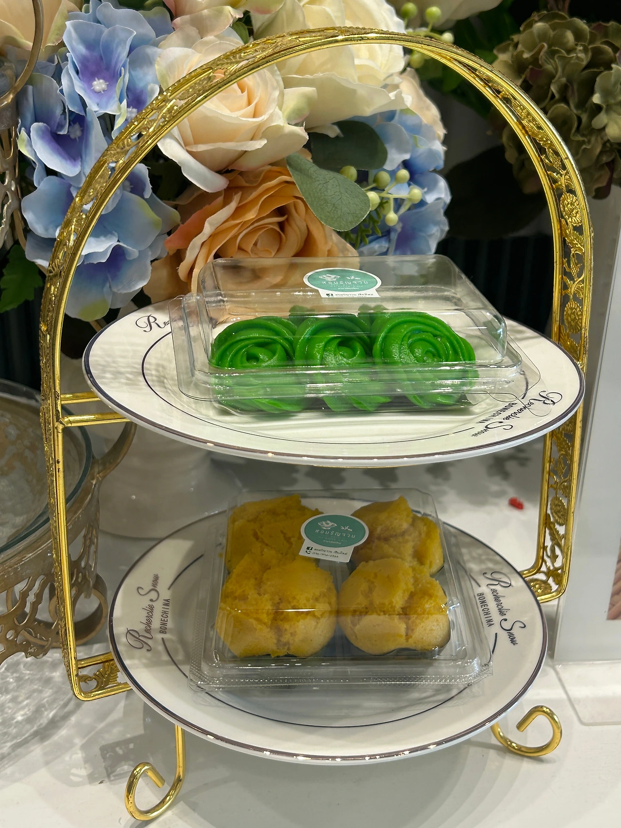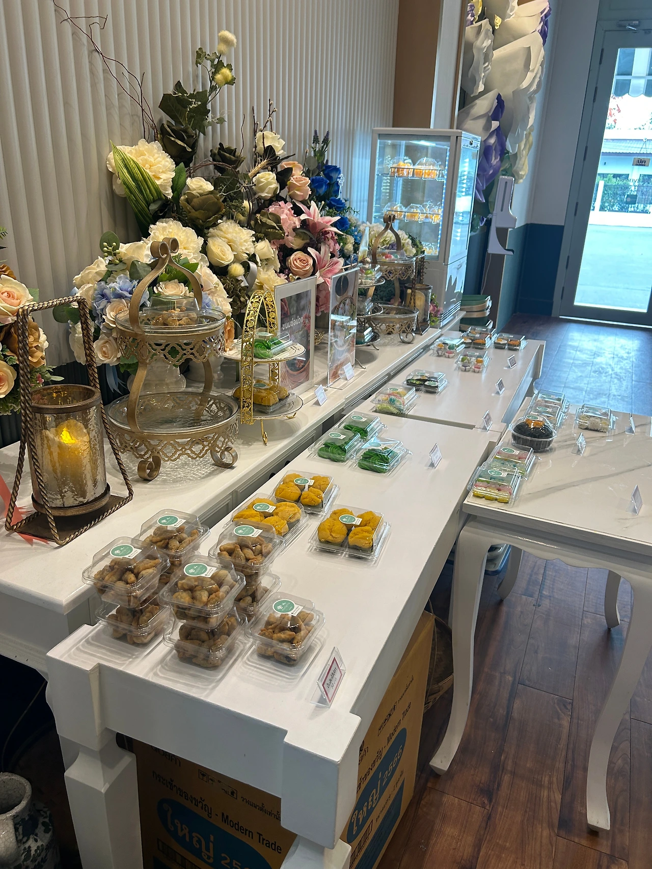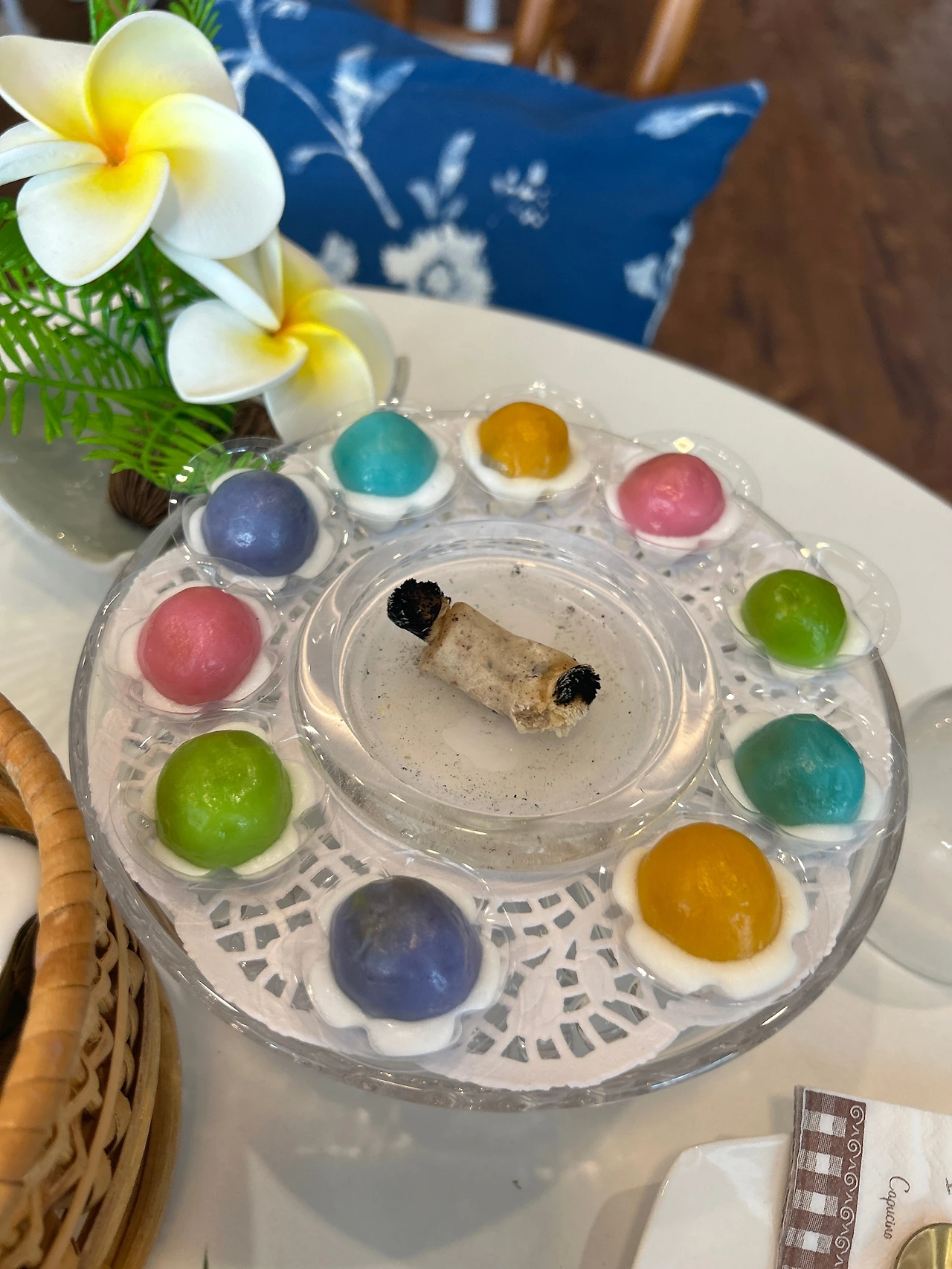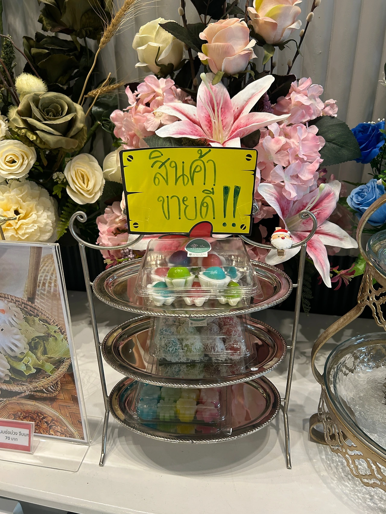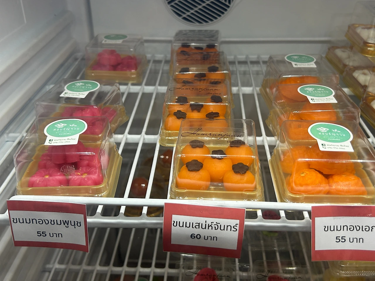 앙금으로 빚어낸 붉은 꽃모양의 화과자는 마치 어린 시절 동네제과점에서 산 버터크림케이크 위에 올려져있던 장미장식처럼 맛에는 크게 특별한 것이 없었다. 조금은 심심한 앙금맛. 아주 달 거라고 예상했지만, 달지 않아서 좋았다. 코코넛밀크로 만든 태국식 떡–혹은 푸딩-은 치앙마이에 와서 좋아하게 된 간식인데 내가 아는 바로 그 구름처럼 푹신하고 부드러운 맛이었다. 보랏빛으로 쪄낸 타로와 샛노란 초당옥수수를 넣어 만드는 이 태국식 디저트도 이제는 제법 그 맛이 익숙해진 것 같다. 알록달록한 태국식 꿀떡은 안에 흑당으로 달콤하게 버무린 코코넛슬라이스가 들어있었는데 깨를 넣은 한국식 꿀떡이 곧바로 떠올랐다.