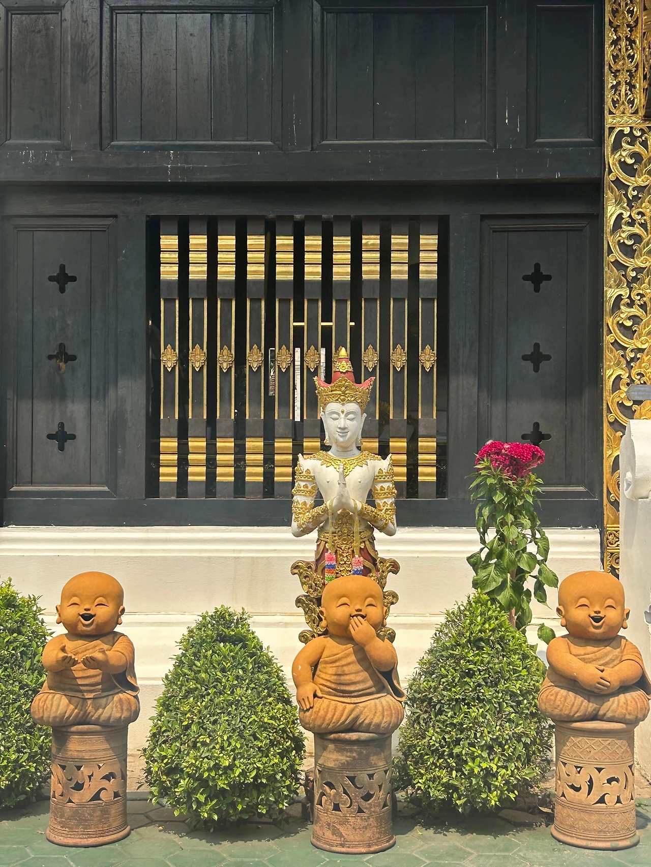 삼왕상 앞엔 오늘의 꽃들이 만발했다. 때가 되면 꽃은 모두 진다는 사실을 아직은 모르는 듯, 햇볕에 물든 꽃들의 자태가 해사하기만 하다.