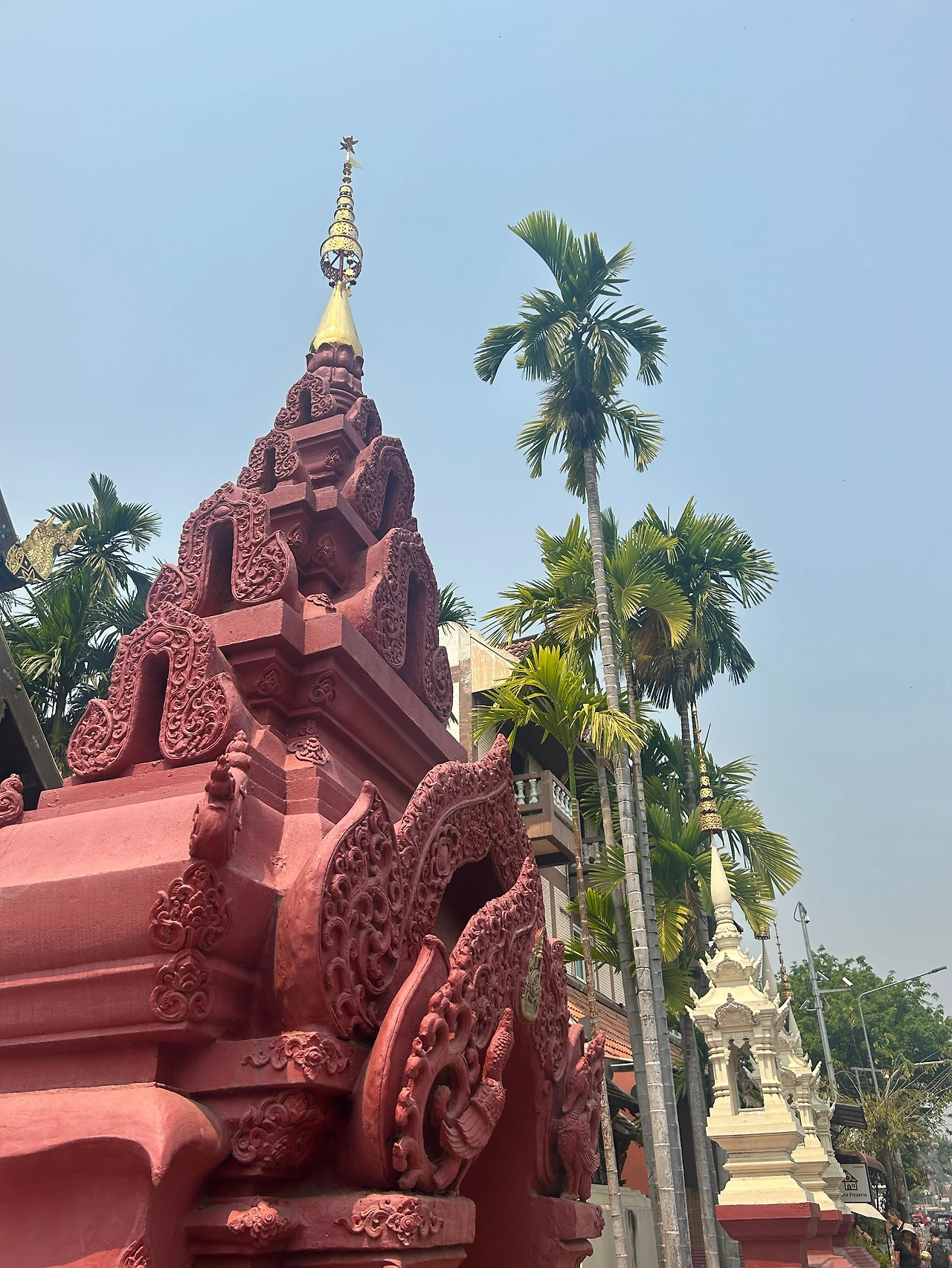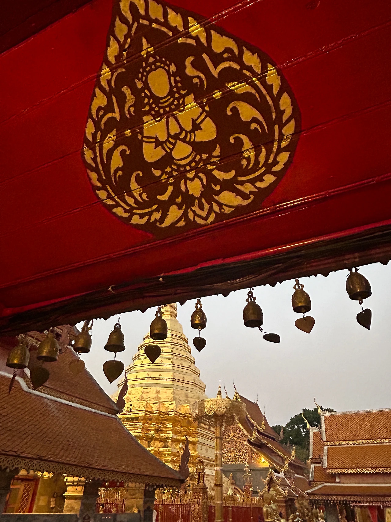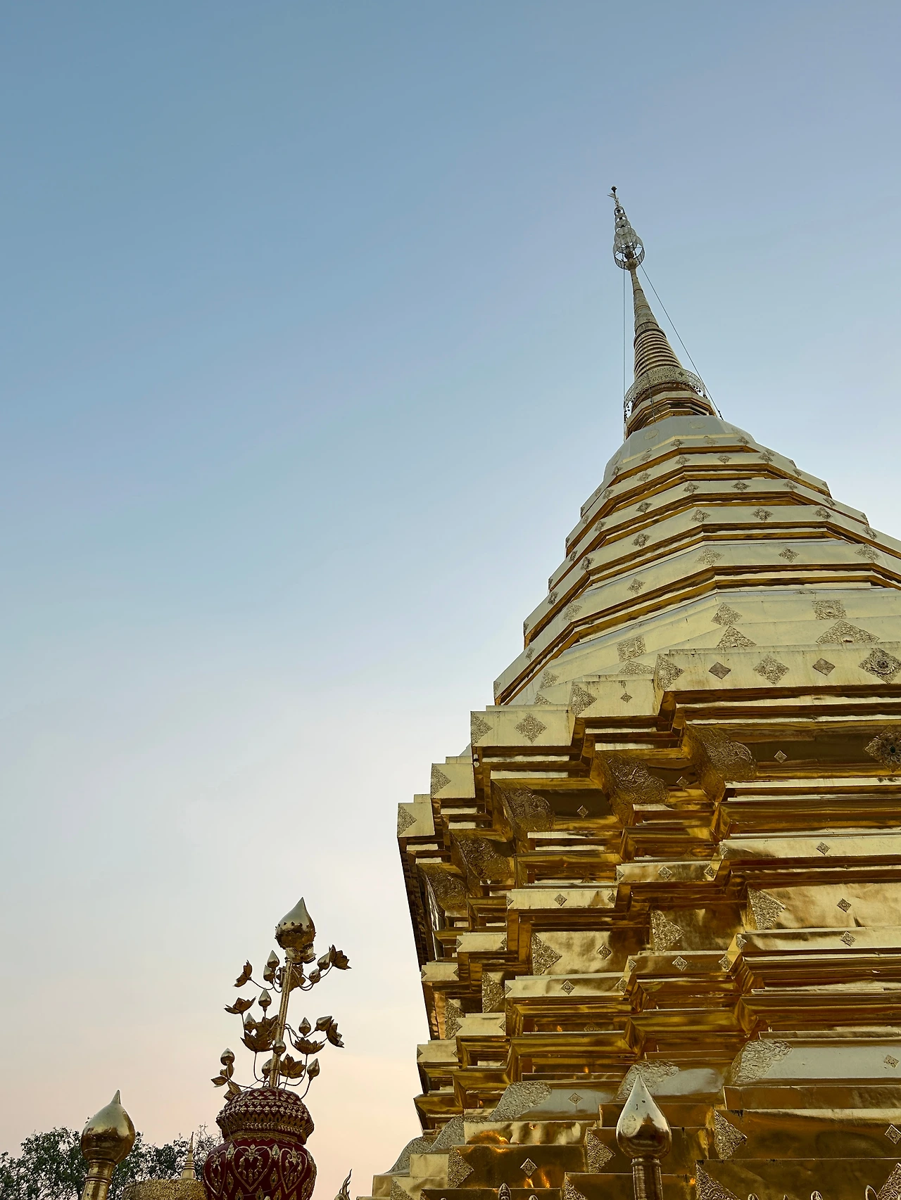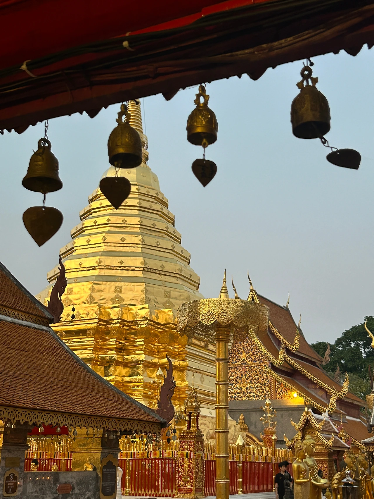 자그마한 기념품과 먹거리를 파는 상점들이 옹기종기 모여 있는 사원 앞은 한국의 여느 유명 사찰 앞과 별반 다를 것이 없었다. 치앙마이에 온 뒤 처음으로 사원에 입장하기 위해 표를 샀다. 자그마한 트램에 몸을 싣고 가파른 트랙을 달려 이윽고 정상에 다다르니, 마치 다른 세상의 문을 연 것처럼 사방이 온통 번쩍이는 금칠이다.