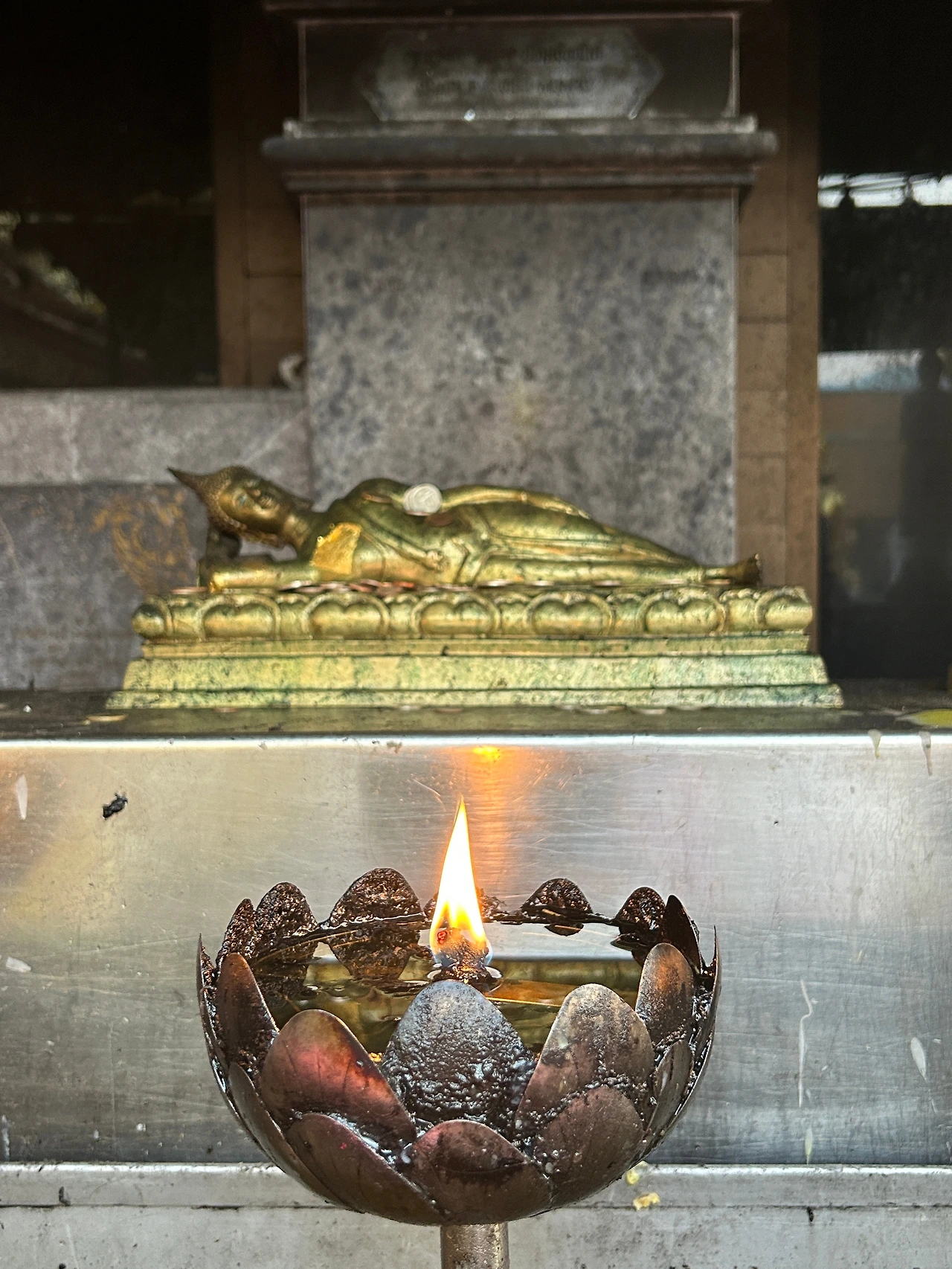 금빛의 한가운데 불꽃은 고요히 타오르고, 그 아지랑이 너머엔 오늘도 저 산 아래 시끌벅적 돌아가는 인간사를 관망하듯 와불이 지그시 팔을 베고 있다.