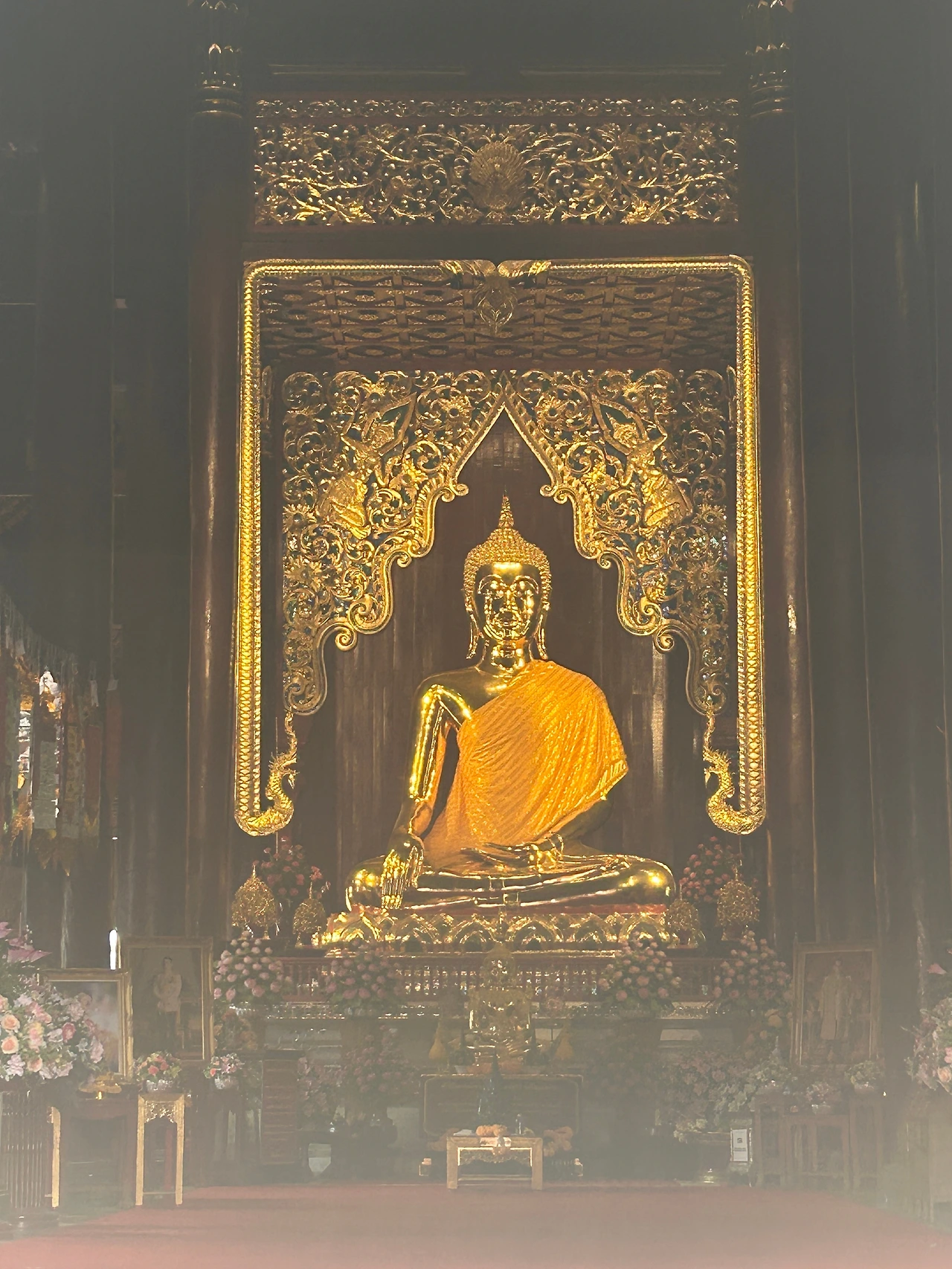 시선에 부딪쳐 오는 그 모든 것들이 금. 단정한 황금의 지붕 아래, 수려하게 조각한 황금의 부처가 걸치고 있는 얇은 옷자락마저, 한 올 한 올이 교교한 금싸라기다. 감탄은, 조금의 빈틈도 없이 사원을 치장한 금이 아니라, 가장 값비싼 재료를 기꺼이 아낌없이 쏟아부으며, 이 사원을 구석구석까지 더없이 정교하게 완성해 낸 사람들의 집념 때문에 기탄없이 터져 나왔다.