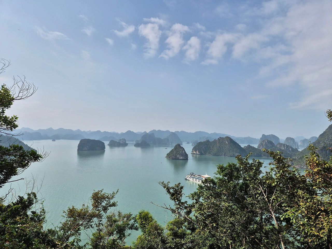 가족팀 아저씨는 남편보다 나이가 많아 보였는데 거뜬히 올랐다. 정상에서 하롱베이의 군도들이 한눈에 들어왔다. 배 위에서 보던 풍경과는 또 다른 웅장함이었다. 일행 중 티톱섬 전망대까지 오른 건 우리 두 가족뿐이었다. 묘한 동질감이 생겼다. 그때까지 각자 사진을 찍던 우리는 상대 가족을 찍어주는 수고를 했다. 우리는 찍어주는 것보다 '찍어 드릴까요'라고 묻는 게 어렵고 번거로운 사람들이다.