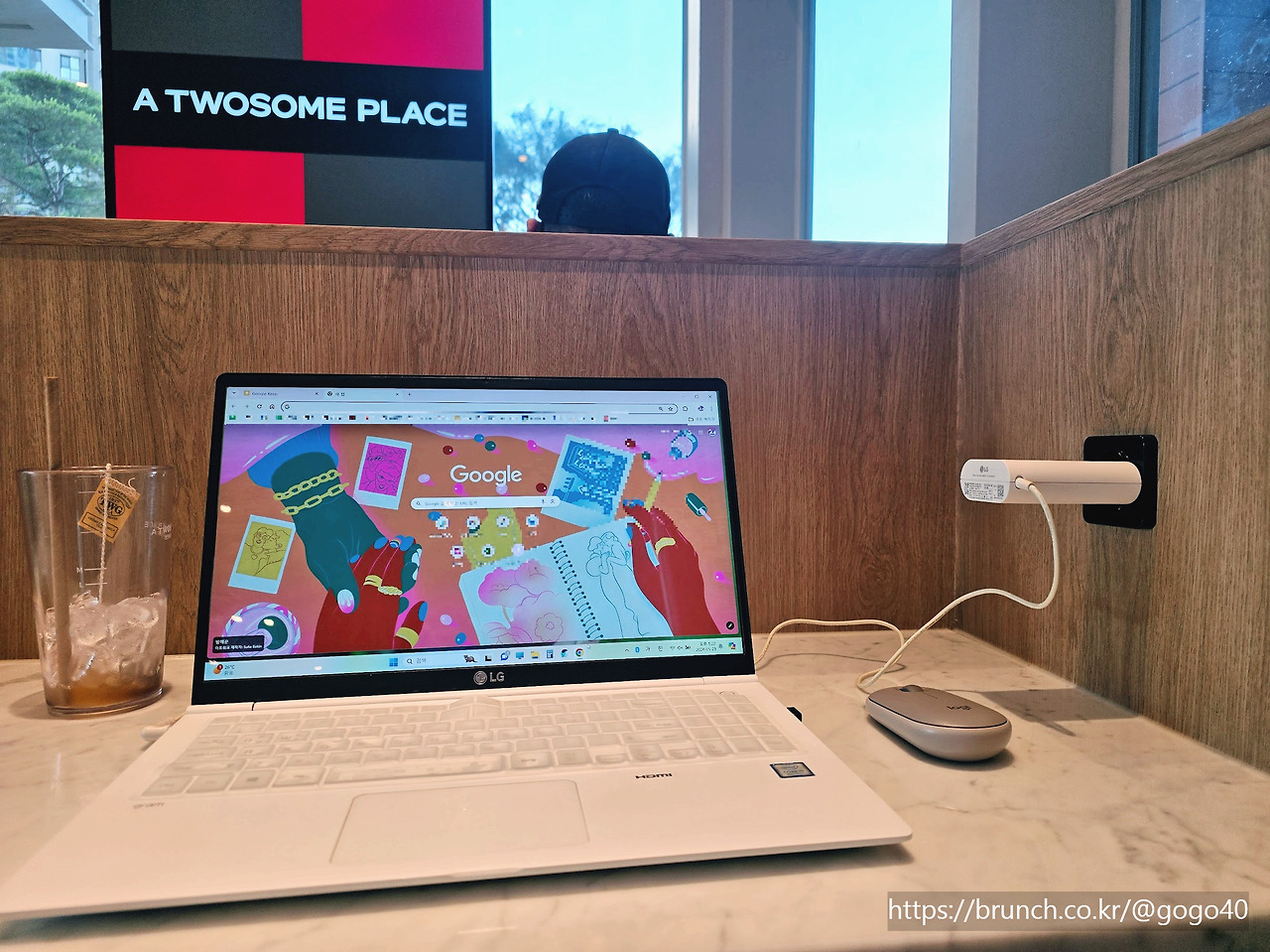 그렇게 오전 타임에 할 일을 끝내고, 엄마가 집에 있는 관계로 허겁지겁 점심을 먹는 둥 마는 둥하고 요즘 나의 아지트인 우리 동네의 자랑(내 맘대로 정함 ㅋ) 커다란 투썸 플레이스로 향했다. 40대 중반의 비혼녀가 백수가 되어 집에 나뉭굴고 있으면 부모님의 짐짝이 되었다는 뜻이고, 부모님은 이를 남부끄러워할 수밖에 없겠지, 이해는 한다.