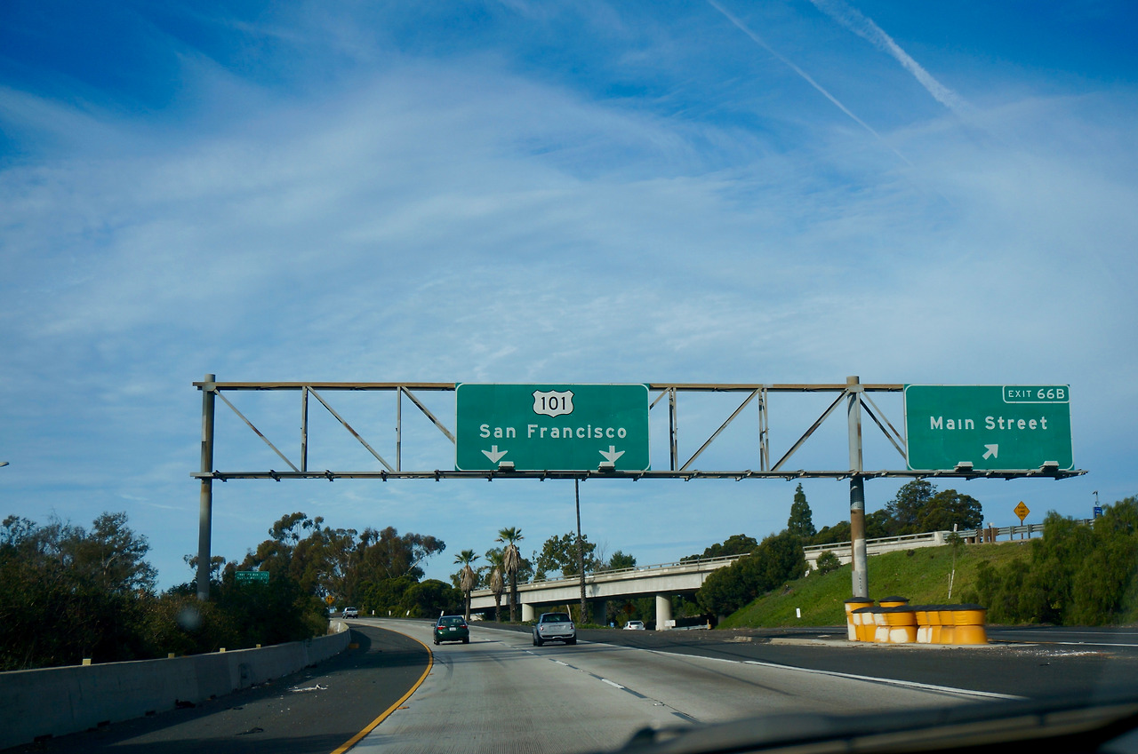 우선 해안도로로 가기 위해 101번 고속도로를 타고 북쪽으로 향했다. 저 땐 저 San Francisco 표지판을 보고 "와 이쪽으로 가면 샌프란시스코래!!" 하며 흥분했지만 하루 종일 가야 한다는 걸 실감하지 못했었다.