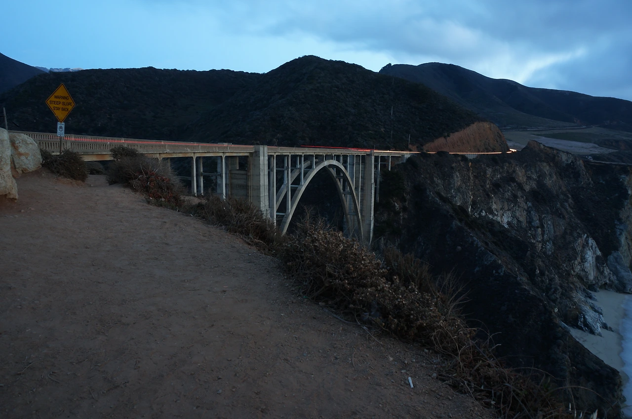 그러다 진짜 Bixby Bridge를 보고 이거구나! 하고 깨달았다. 이미 해가 다 져서 삼각대를 놓고 찍어봐도 별로 예쁘게 나오진 않았지만 나름 명소를 봤다는 것에 만족하고 숙소로 향했다.