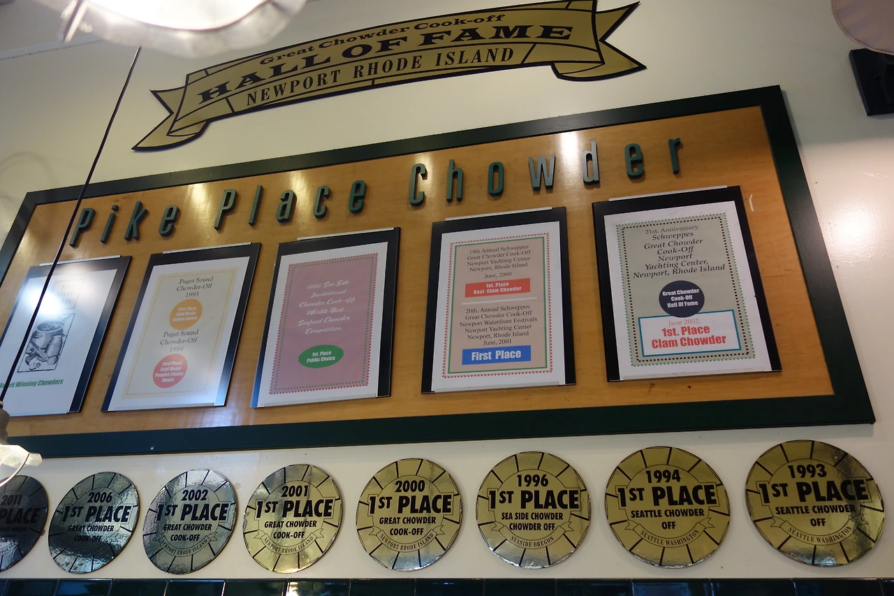 여길 다시 온 이유는 Pike Place Chower라는 유명한 클램 차우더를 먹으러! 역시 피어 근처면 이런 유명한 해산물 맛집이 꼭 있는 것 같다. 마켓 근처 Post Alley라는 골목에 자리하고 있다.