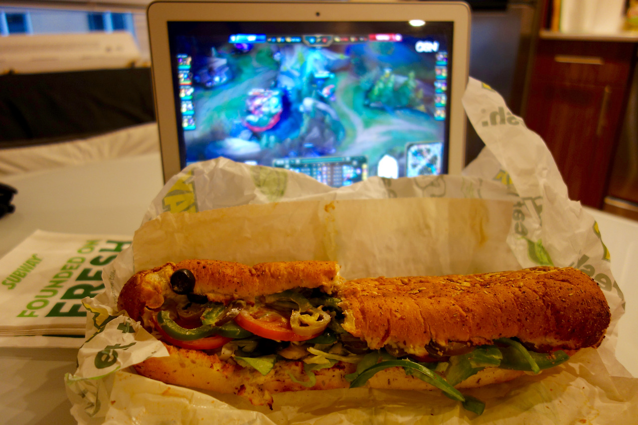 대학가에 나오니 상점들이 많았다. 하루 종일 아무것도 안 먹은 게 생각나서 서브 하나를 포장했다.