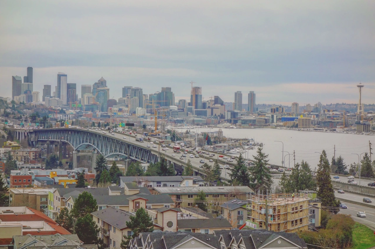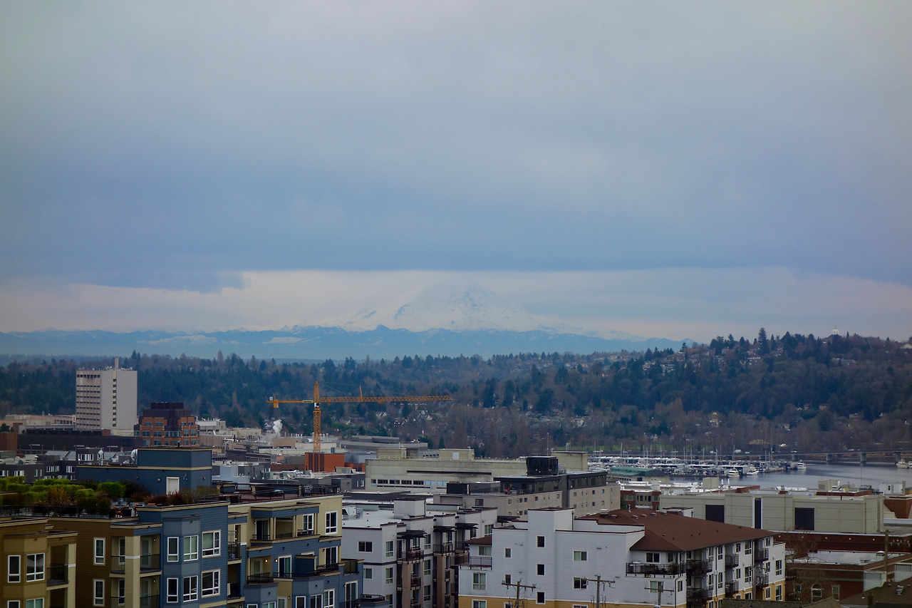 아침에 옥상에 올라가서 본 시애틀 스카이라인.