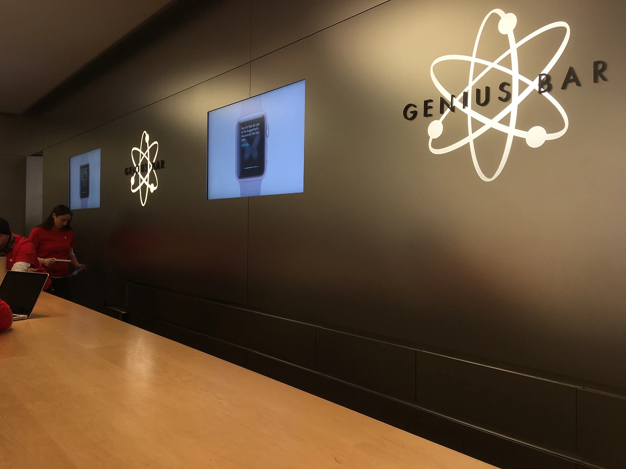 1:45 PM 예약을 하고 왔다. 예약 줄에 서서 지니어스가 이름이 뭐냐길래 대답했더니 잘 모르겠다는 표정을 지었다. 처음엔 발음 때문인가 해서 라스트 네임이 '윤'이야 했는데 예약 내역이 없다고 했다.