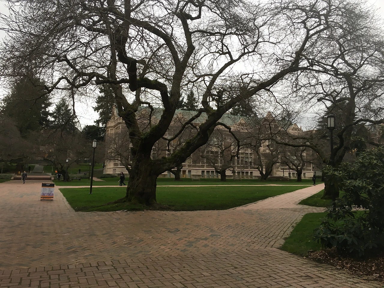그래서 버스를 타고 빠져나가려고 하는데 잔돈이 없었다. $5짜리 밖에 없어서―시애틀 버스는 잔돈을 거슬러주지 않는다― 구글맵을 열심히 보면서 버스 정류장 근처에 잔돈 바꿀만한 곳을 찾았다. 이놈의 대학교는 뭔 건물을 다 가봐도 벤딩머신도 없고 매점도 없냐!!!!!!! 30분 넘게 방황하다가 이렇게 된 이상 캠퍼스를 가로질러 U Distric 쪽으로 나가는 게 낫겠다 싶어 또 비를 맞으며 걸었다.