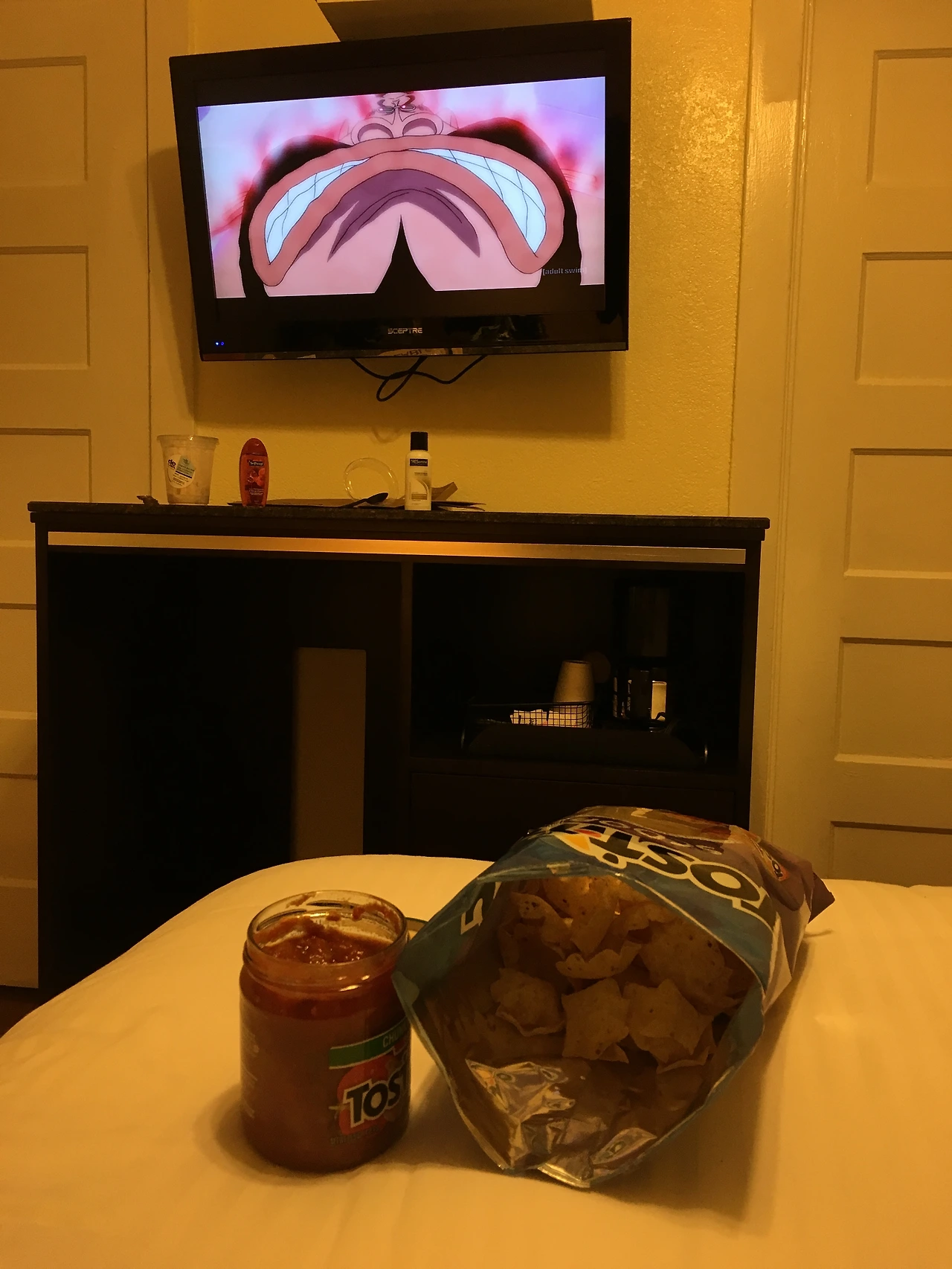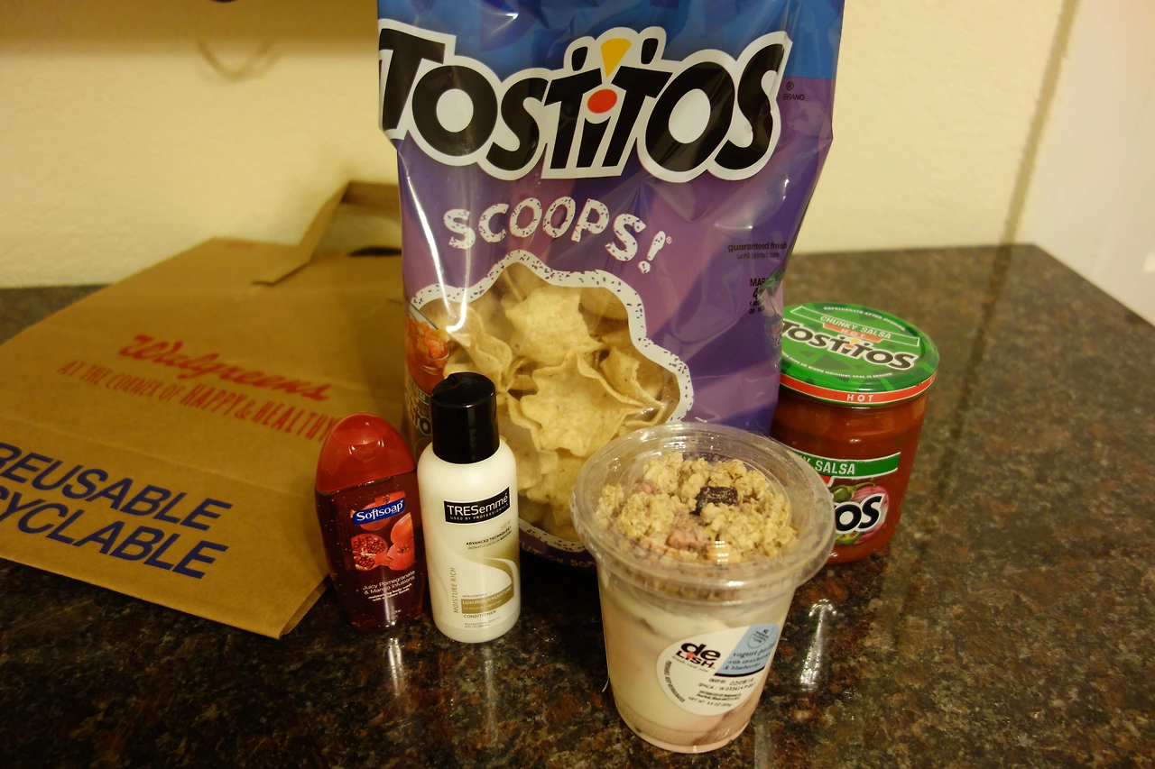 숙소에 어매너티가 없어서 예전에 써보고 향에 반한 석류향 바디워시―해외직구 하고 싶을 정도―랑 샴푸를 사고 내가 제일 제일 좋아하는 나쵸랑 핫 살사! 그리고 요거트도 샀다.