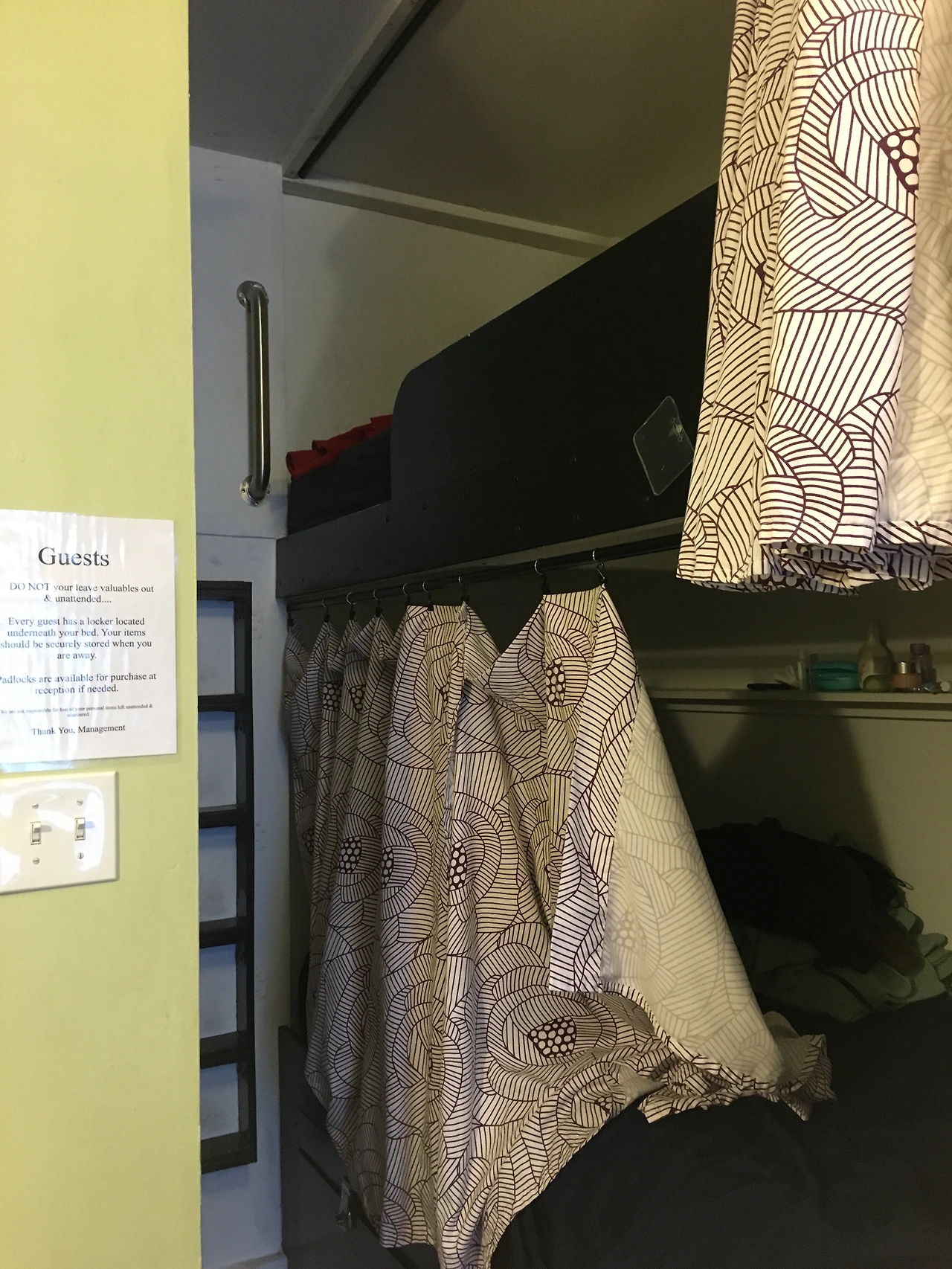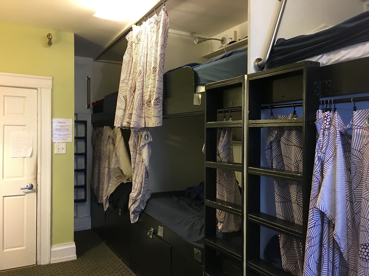 근데 숙소에 들어가 봤더니 좁아터졌는데 베드가 8개.. 결정적으로 내 베드는 저 사다리를 타고 올라가서 2층에서 자야 하는데, 저 사다리를 타려면 손가락 발가락이 어딘가를 쥐어야 힘이 들어갈 텐데 사다리가 벽에 딱! 붙어있는 채로 손가락을 짚을 여유가 1inch도 되지 않아서 손톱이 부러지는 기분이었다.