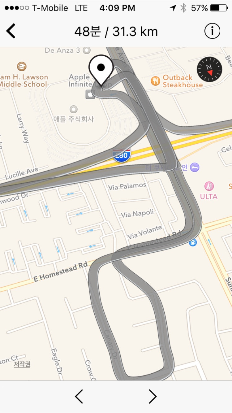 처음에 애플 본사로 똑바로 찾아 들어갔는데..주차장이 만차라 빙글빙글 돌다보니 입구를 못찾아서 교통 흐름대로 쓱 나왔더니 어느새 280번 도로를 타고 다시 노쓰 샌프란으로 향하는 길이었다 ^^...
