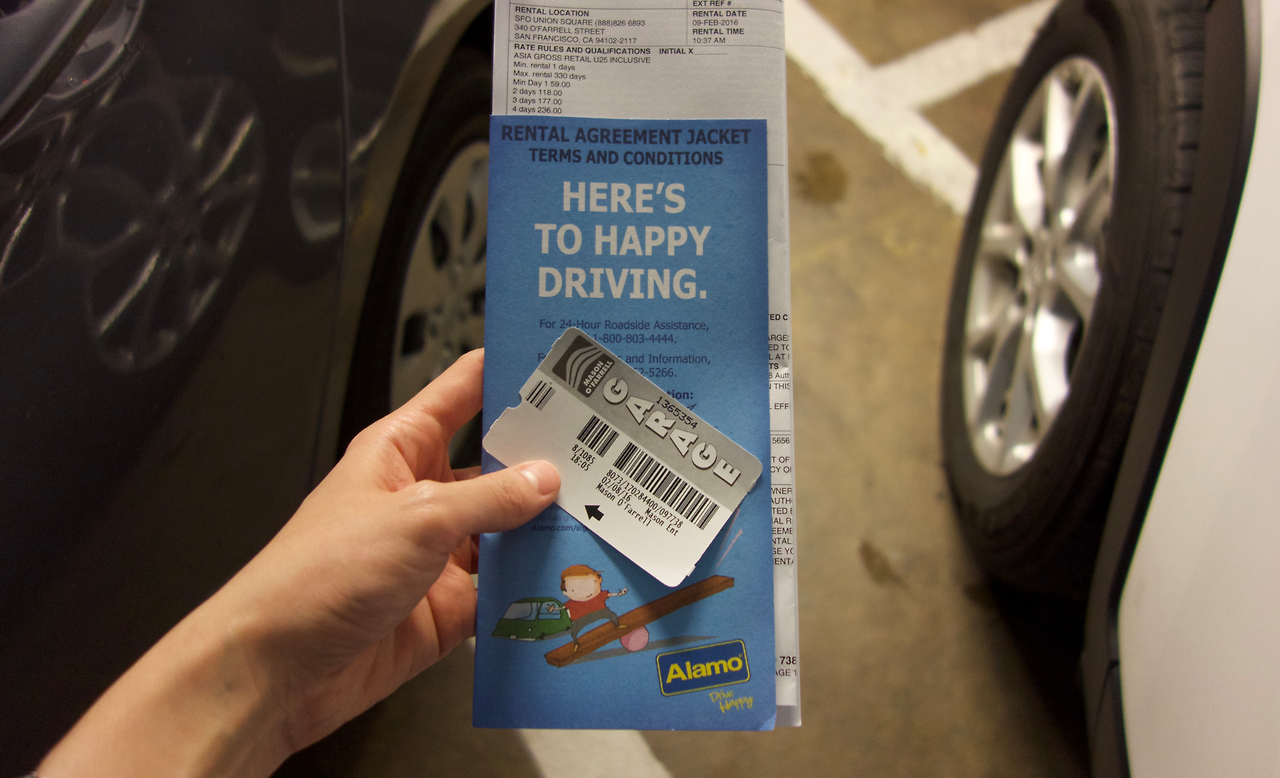 다시 호텔에 짐 가지러 가는 길. 이게 샌프란에서의 마지막 MUNI 버스가 되겠군. 호텔에서 짐을 바리바리 싸들고 걸어서 3블럭 정도 되는곳에 Alamo 렌탈카 업체로 갔다. 30-40분 정도 줄을 서서 차를 빌렸다. 여행 오기 전에 한국에서 미리 예약하고 왔는데 어디서 만 25세 미만 Underage는 스포츠카 종류를 못빌린다고 그래서 "언더에이지인데 머스탱 빌릴 수 있나요?" 했더니 "그럼! 근데 지금은 안돼" 이랬다 ㅋㅋㅋ