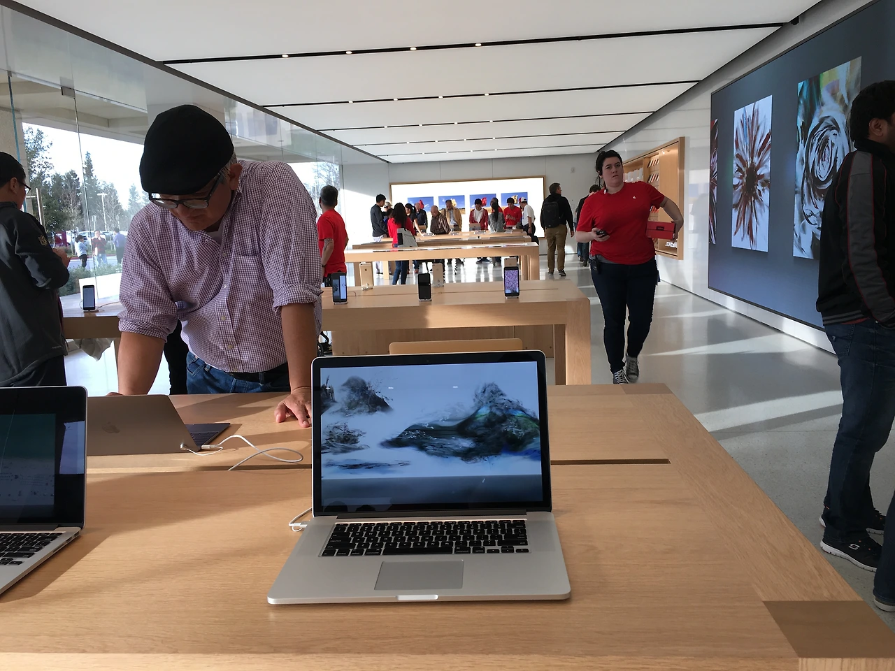 너무 친절해서 고맙다 감동이다 사진 같이 찍어달라 했더니 너무 흔쾌히 찍어주셨다. 그러면서 애플 특유의 그 행성 배경화면 나오는 커다란 LED앞에서 기념사진도 찍어준다고 했다. 그..그건 필요 없는데 하며 찍었는데 왜이렇게 굳어있냐고 자꾸 웃으라고 치즈 하길래 억지로 웃었더니 호두까끼 인형처럼 나왔다..