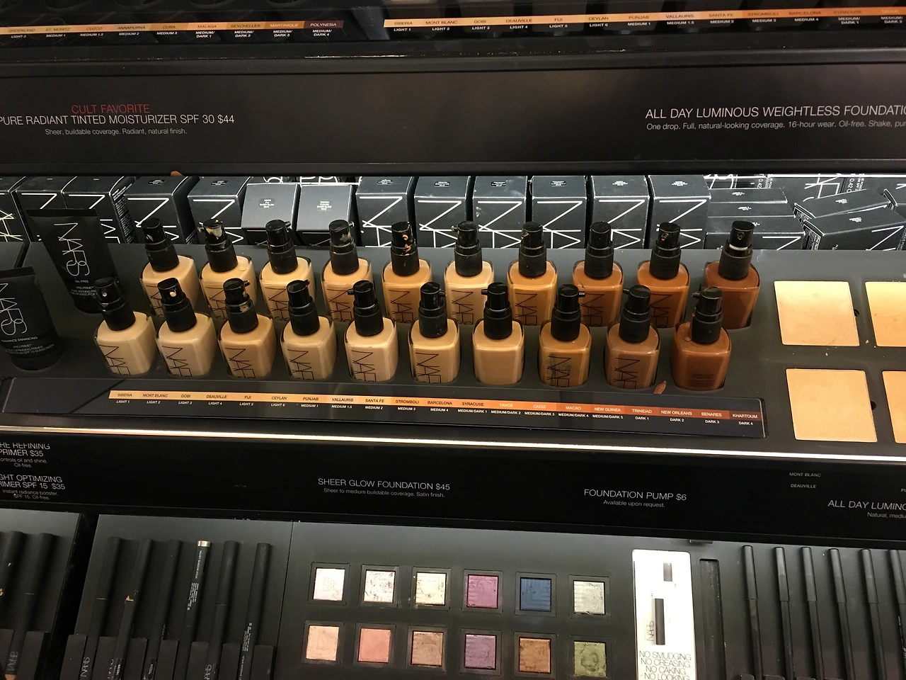 이 때 가져갔던 립펜슬을 거의 다 써서 깎았어야 했는데 한국에서 연필깎이를 안가져갔었더랬다. 마침 세포라에 가서 발견했지만..한국에서 1500원이면 사는데..하면서 짠돌이처럼 안샀다. 역시 이렇게 다양한 컬러의 파데가 있는게 다인종의 쌀국 답고요. 하하 세포라!! 코덕은 커녕 화장도 잘 안하지만 그냥 옳다. 구경만 해도 좋다!