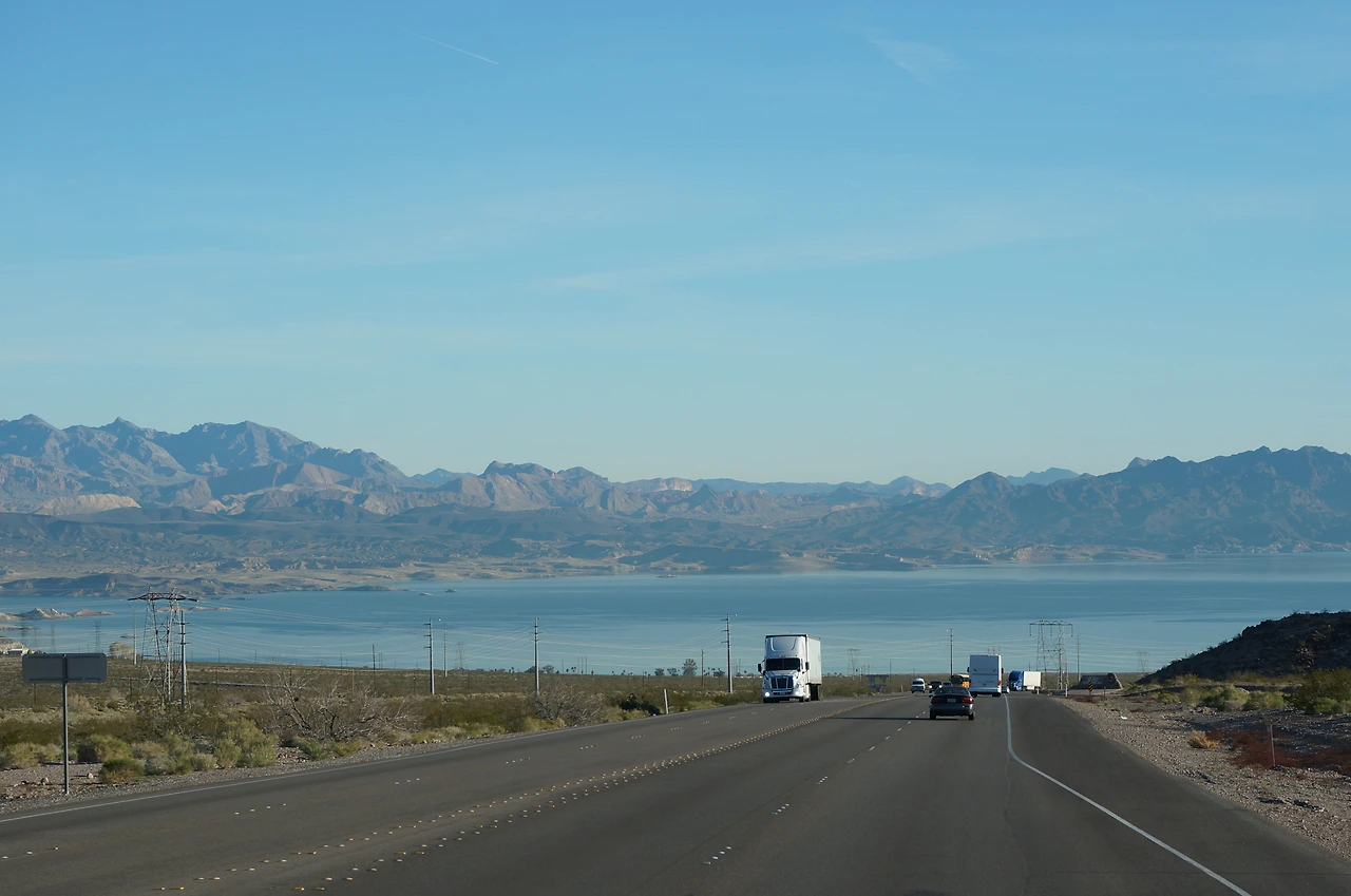 끝없는 일자 도로를 가다 처음으로 마주한 Lake Mead.
