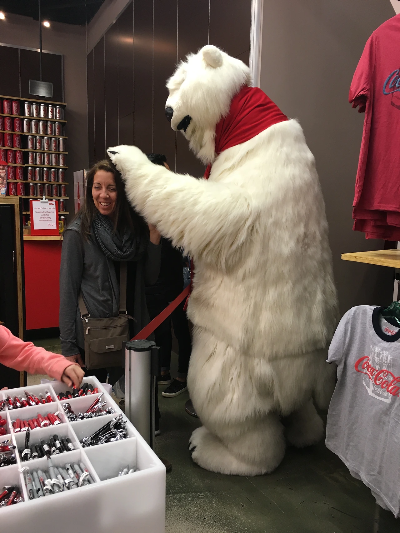 우와 쓰레기통도 코카콜라 병이야!!! 엄청 거대한 폴라베어가 사람을 쓰다듬으면서 다니고 있어!!!!