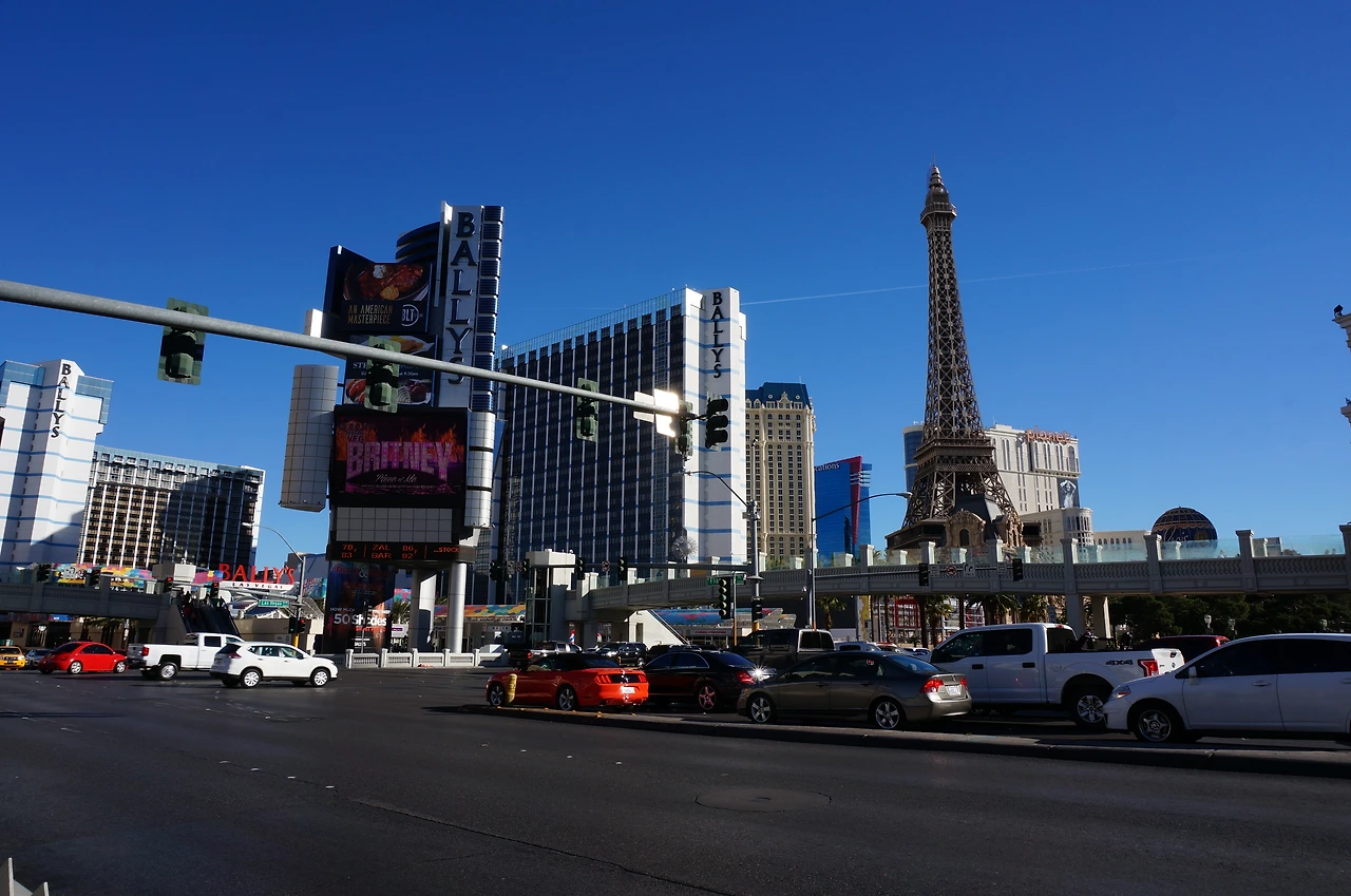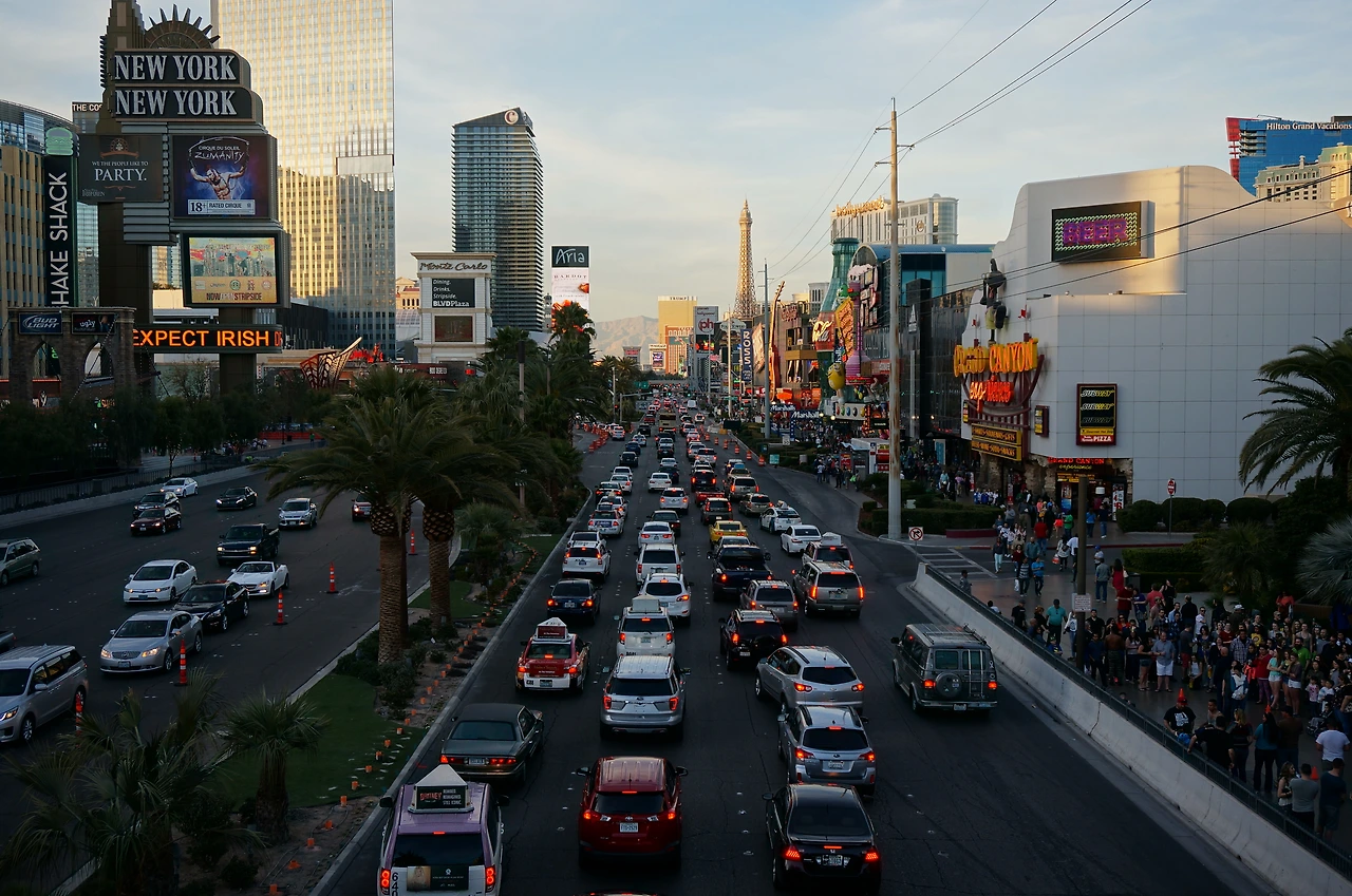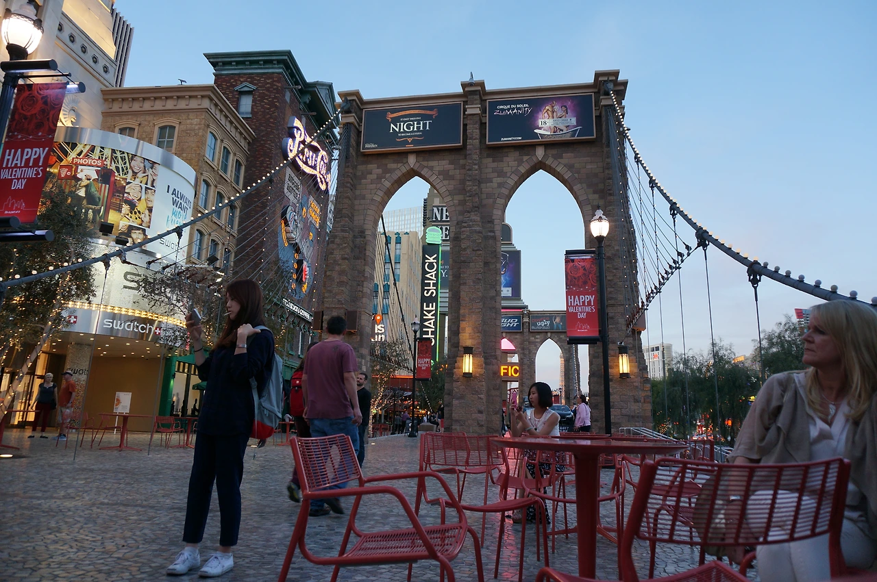 뉴욕뉴욕 호텔 보러 길을 건넌다! 슬슬 어두워지기 시작하니 대로가 차들로 꽉 차 간다.