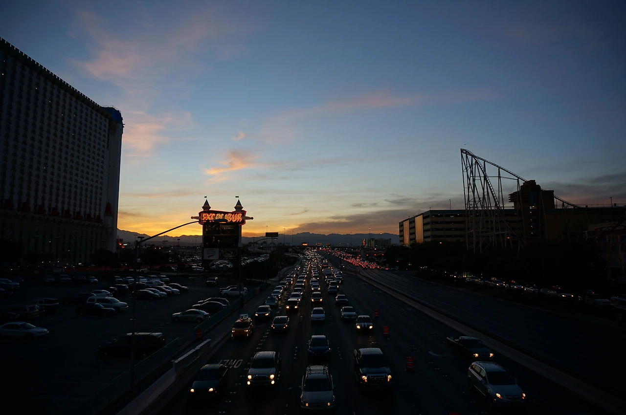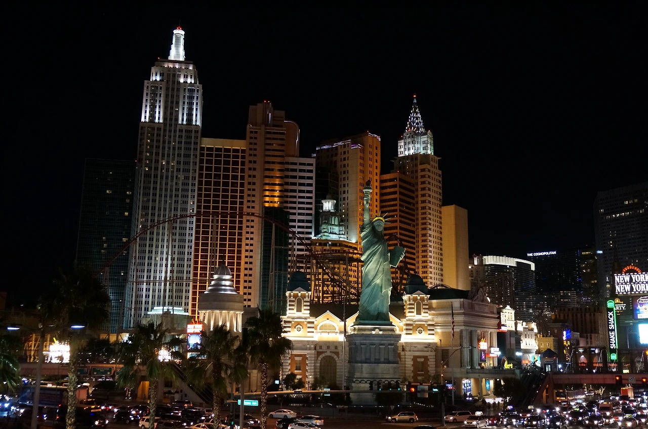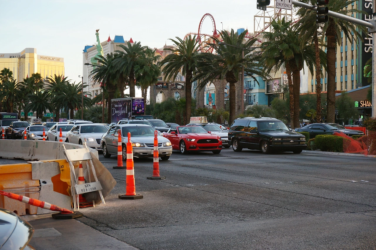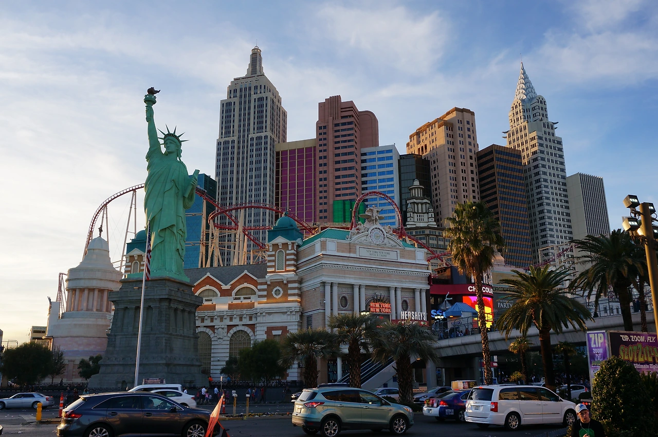 뉴욕뉴욕 호텔 보러 길을 건넌다! 슬슬 어두워지기 시작하니 대로가 차들로 꽉 차 간다.