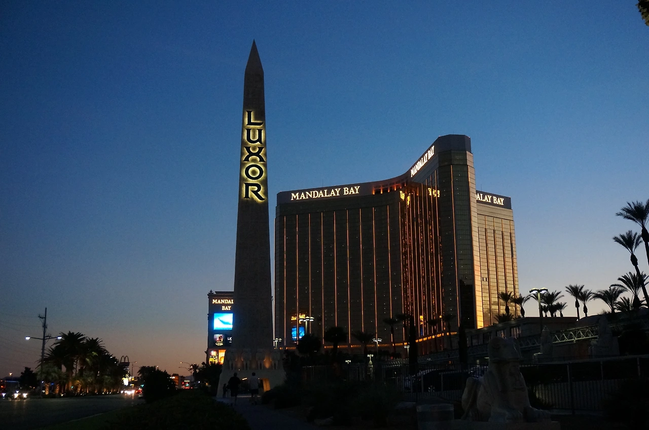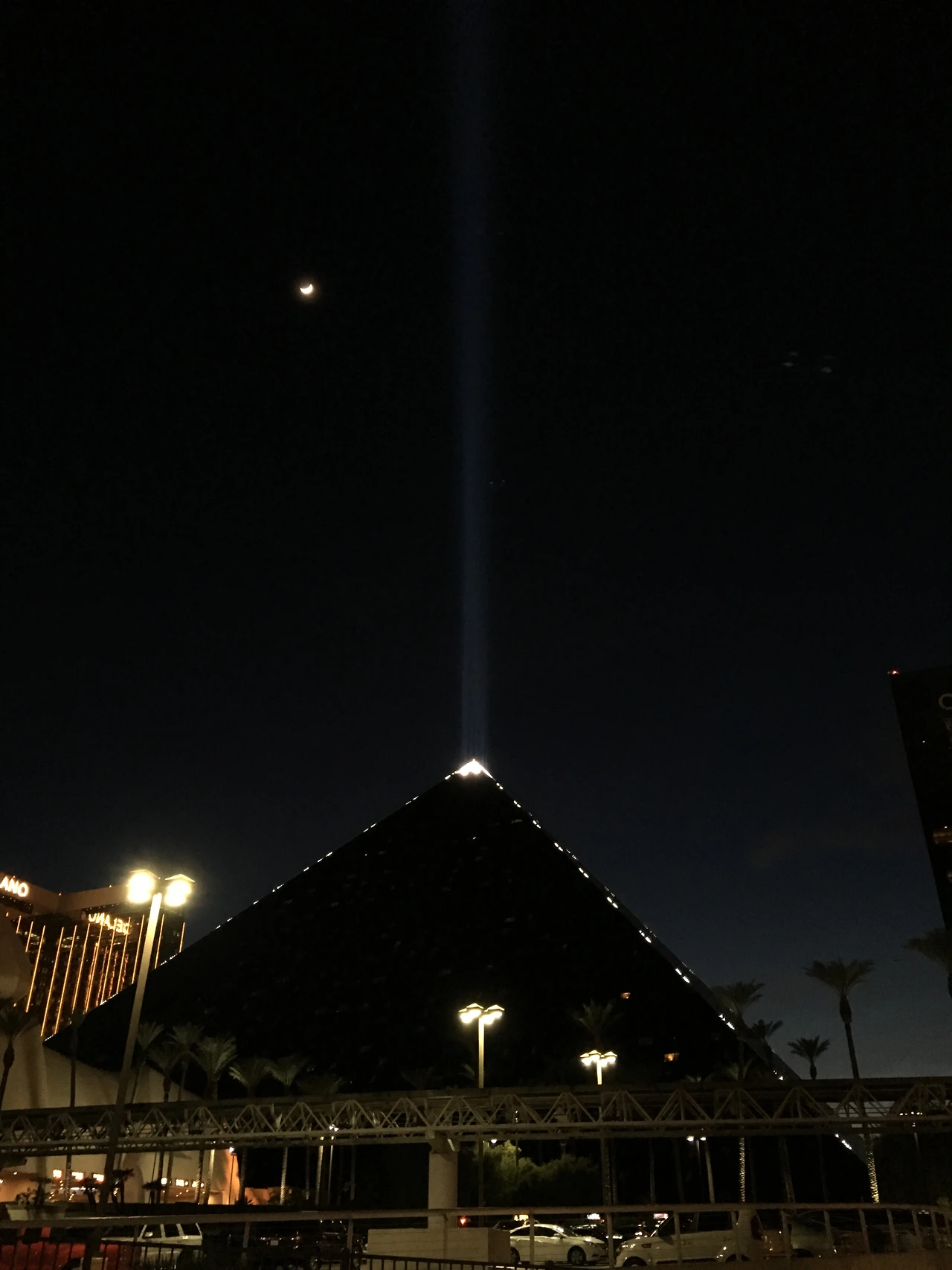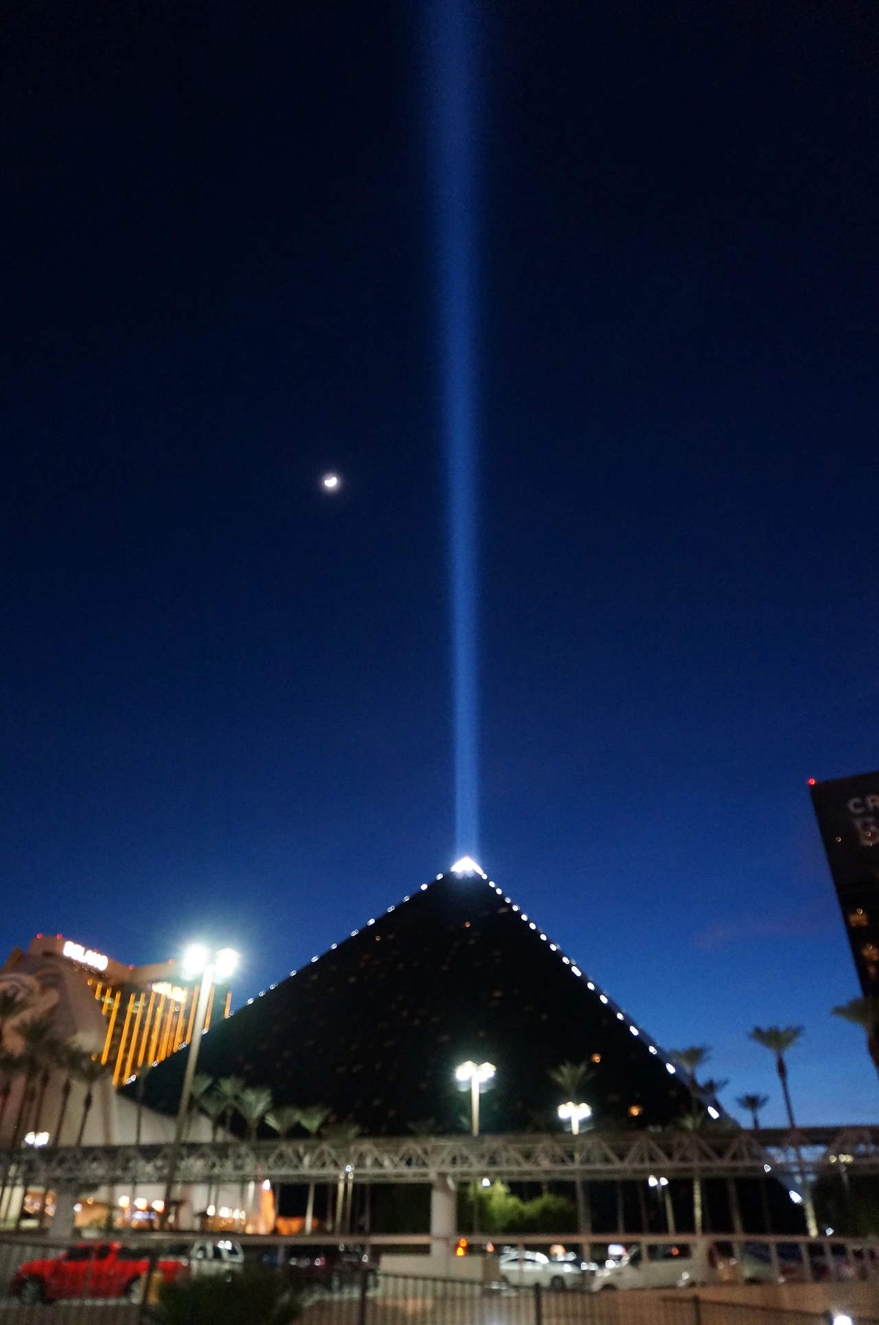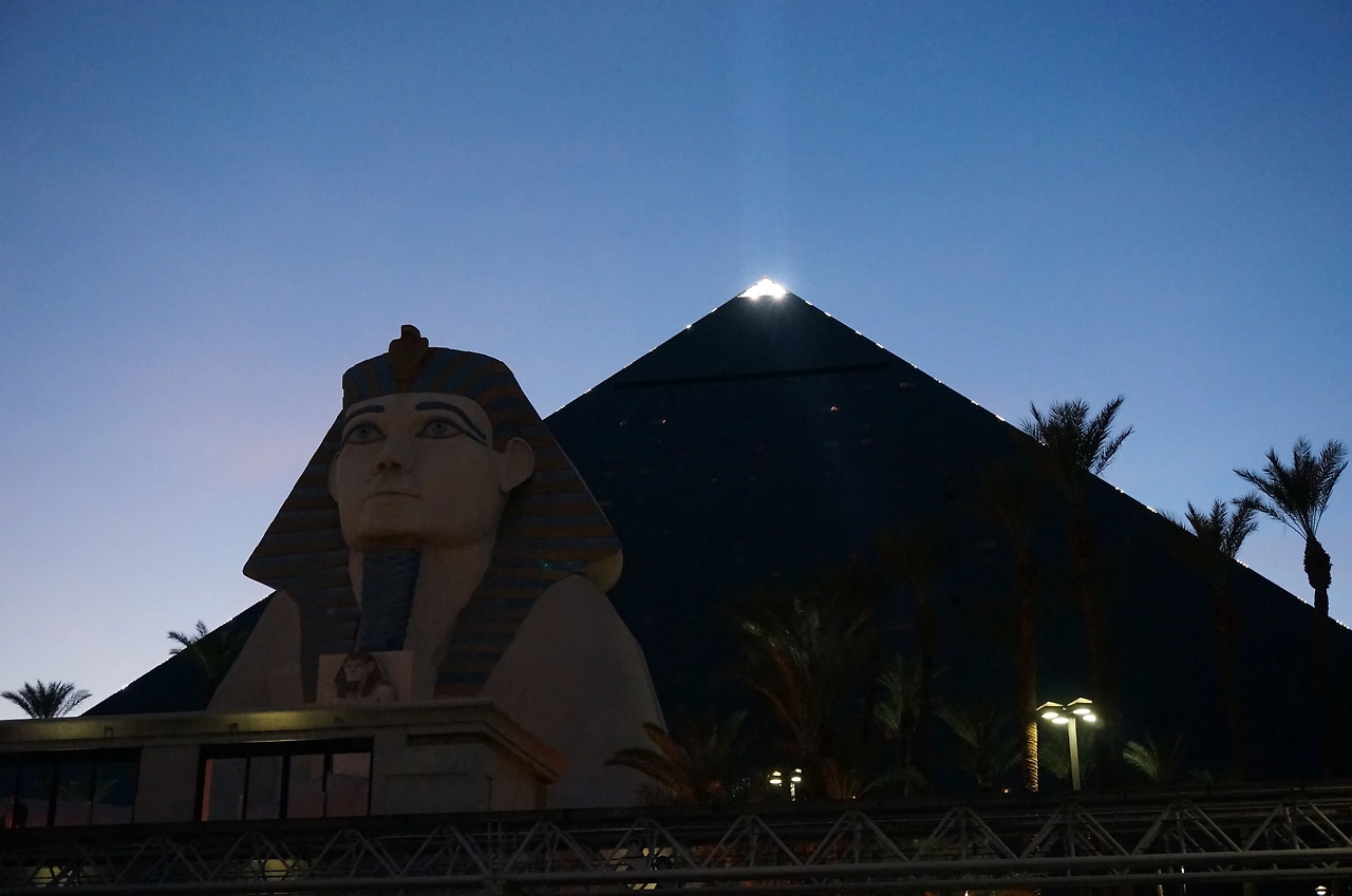 컨셉이 이집트 피라미드 같다. 진짜인지 아닌지 모르겠지만 네바다 사막에서 길을 잃으면 룩소 호텔 꼭대기의 빛나는 레이저를 보고 라스베가스 시내 방향 찾으라고 만들었다는데 진짜 저게 보일까?