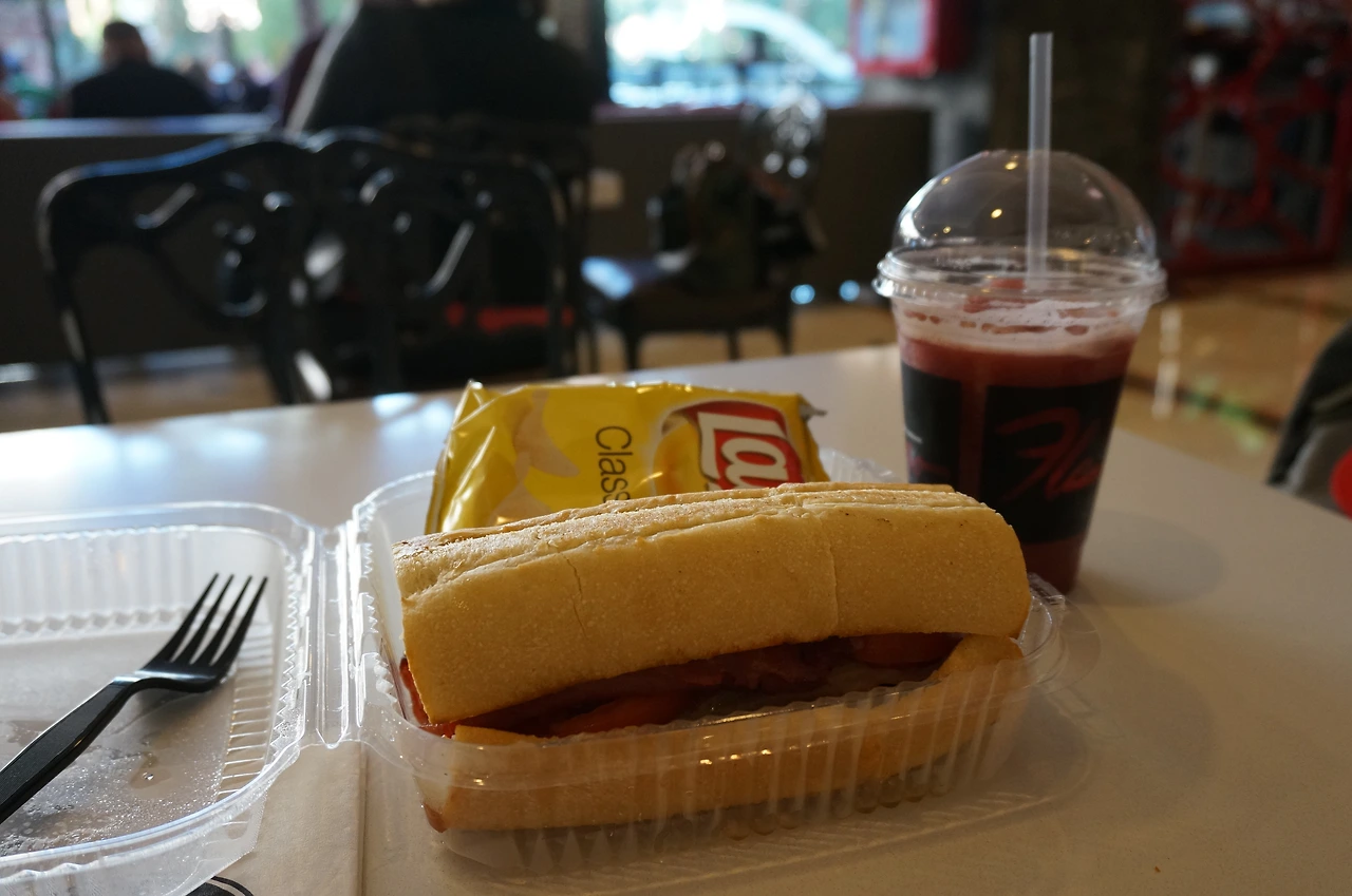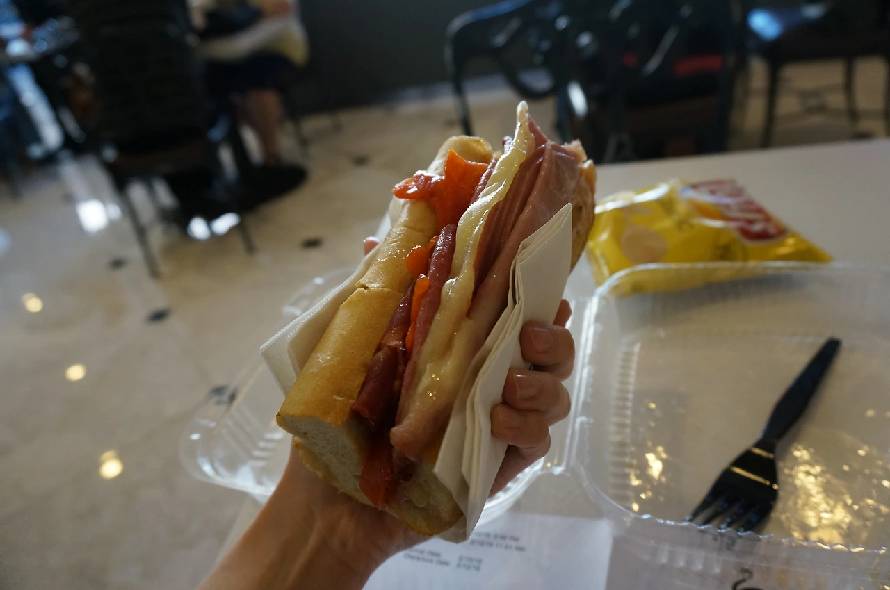 커다란 BMT 샌드위치와 와일드베리 스무디를 받았다. 전날 저녁을 먹는 둥 마는 둥 해서 배고팠어서 그런지 짠데도 잘 먹었다. 와구와구 먹다가 입술이 아니라 코랑 볼 화장까지 다 지워질 뻔했다.
