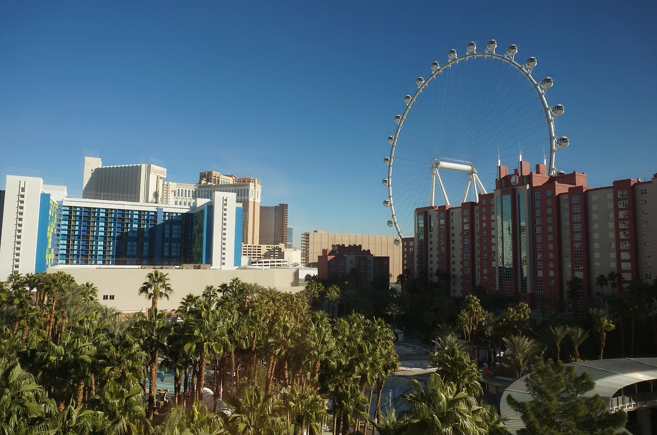 대관람차가 보이는 플라밍고 호텔에서의 마지막 아침이다.