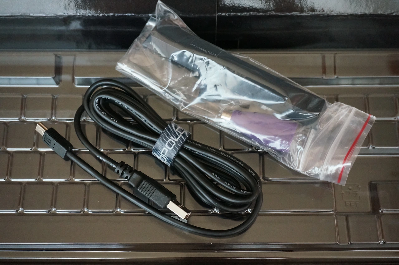 PS/2 어댑터와 키캡 리무버가 들어있다. 플라스틱 커버를 벗겨내니 내가 제일 좋아하는 새 기계 냄새가!