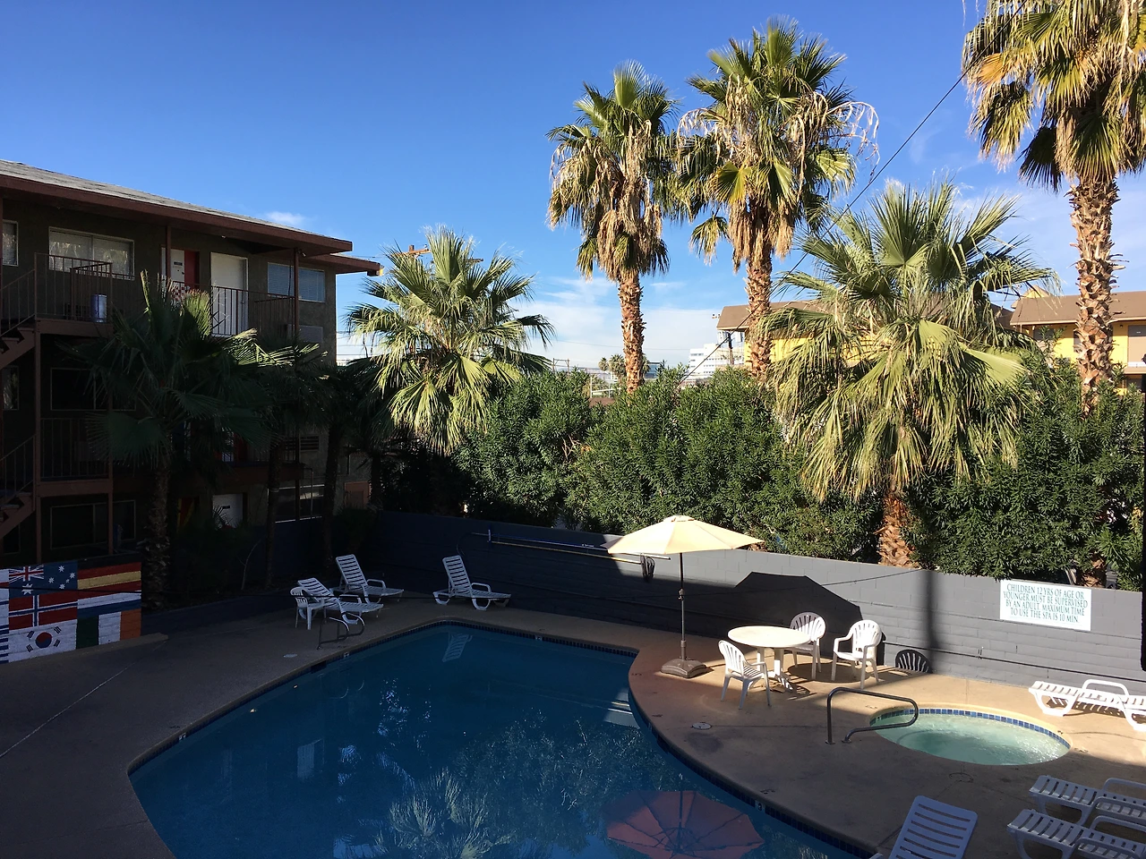 전 날 밤에 도착해서 못했던 숙소 구경을 하는데 사진과 같은 수영장이 있긴 했지만 사진과는 매우 달랐다.