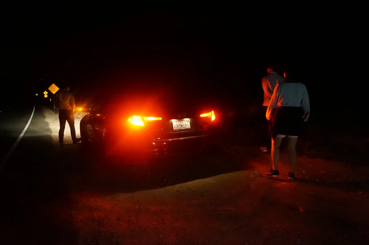 어느 정도 안쪽까지 들어왔을 때 점멸등을 켜고 서는 일행의 차를 보고 나도 섰다! 그냥 LA 밤하늘에서도 별이 잘 보였는데 여기까지 오니 도시의 불빛도 사라지고 별이 내 눈앞으로 쏟아지는 듯했다.