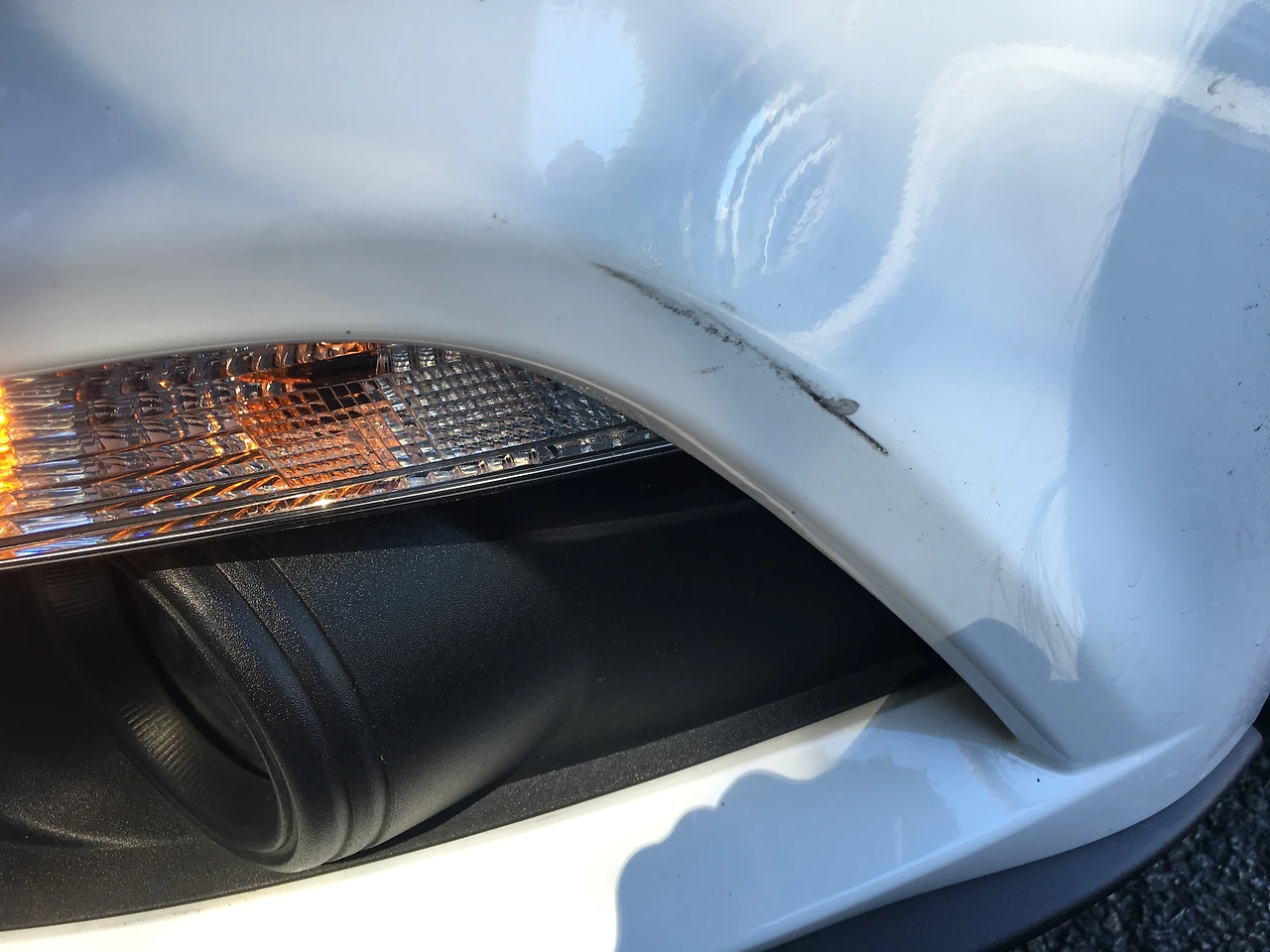 머스탱 범퍼에 요만큼 덴트 난 정도. 심지어 저 중에 반은 그냥 때 묻은 거라 손으로 지우니 지워지던데.