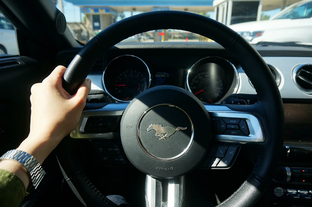 신호 걸린 동안 머스탱 내부도 좀 찍어주고 우훗우훗 너무 예쁘다