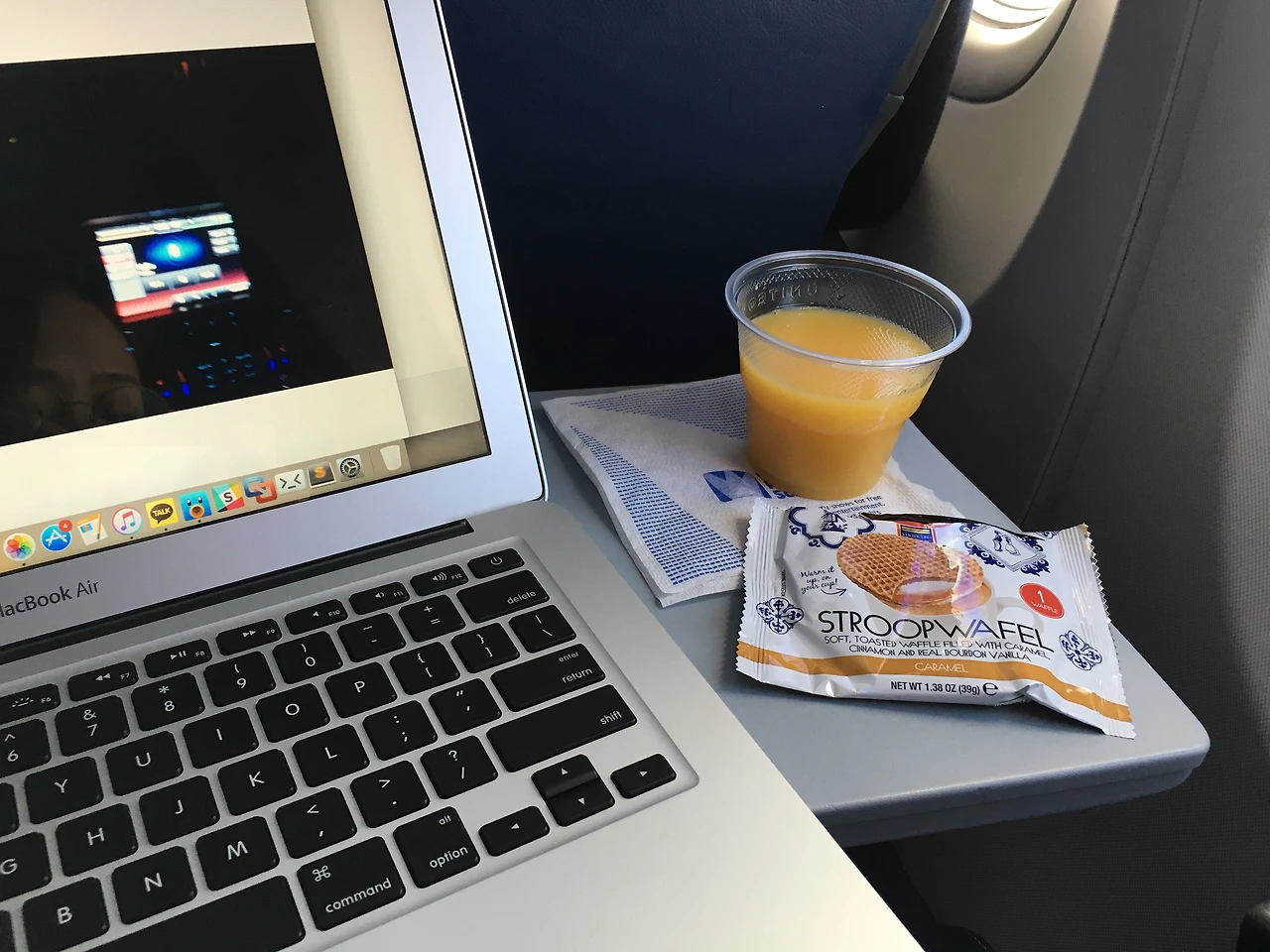 우여곡절 끝에 뜨자마자 기내식을 받았고 정말 맛이 없었다! 형형색색의 익은 채소의 물컹함이란.. 스트룹 와플만이 꿀맛이었다.