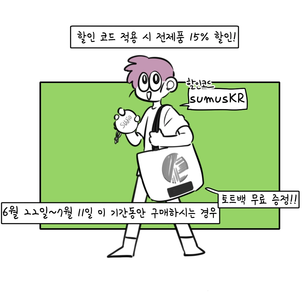 할인코드 sumusKR을 적어 15% 할인받고