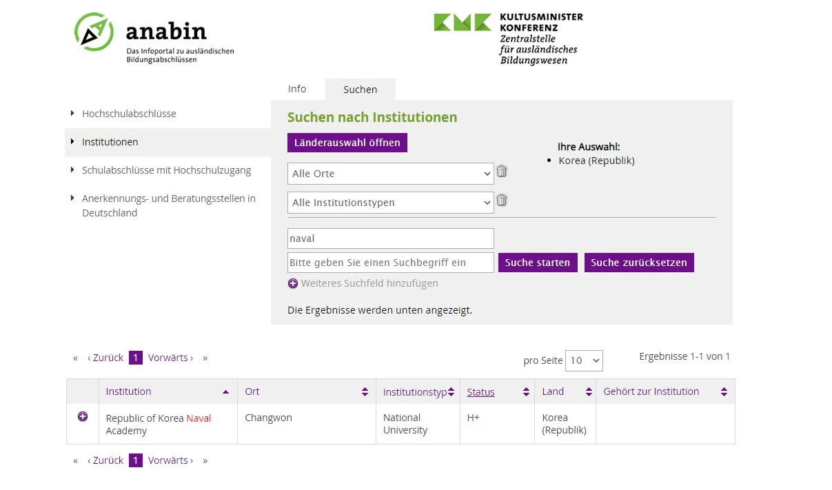 독일 교육부에서 각국 대학의 등급을 매기는데, H+는 4년제 종합대학, H-는 전문대학, H+/-는 사이버대학 등. 안타깝게도 이유는 모르겠지만, 사관학교는 H+/- 등급이었다. 이 등급, 즉 대학 졸업장에 대한 판단은 각 대학 입학처의 소관인데 경험해보니 케바케.