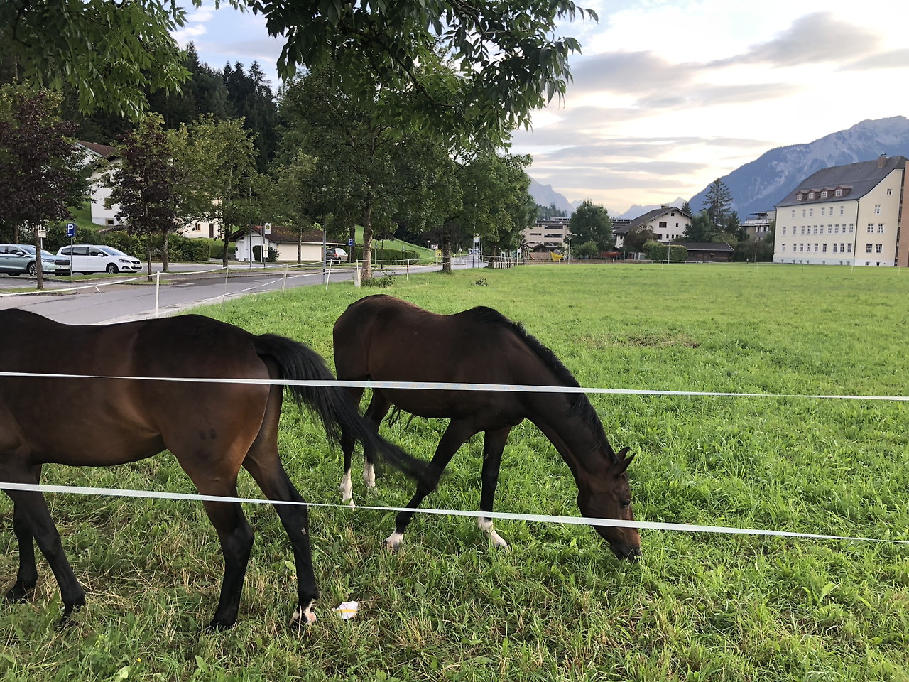 그나저나 이곳은 정말 아름답다. 평화롭고 목가적인 풍경과 가정들이 눈에 띈다. 심지어 도시 안에 말을 위한 농장도 있다. 알프스의 험준한 봉우리가 병풍처럼 둘러싸인 게 정말 장관이다. 다만 아쉬운 건 너무 차량이 많다. 차량 통행 때문에 보행자와 자전거를 위한 길이 협소하고, 다소 위험하게 느껴진다. 아무래도 시골이고, 겨울엔 스키 타러 사람들이 많이 올 테니 그런 이유로 차량 중심의 도로 형성이 되지 않았나 생각해본다. 우리나라의 도시 외곽, 시골 모습이라고 볼 수도 있겠다.
