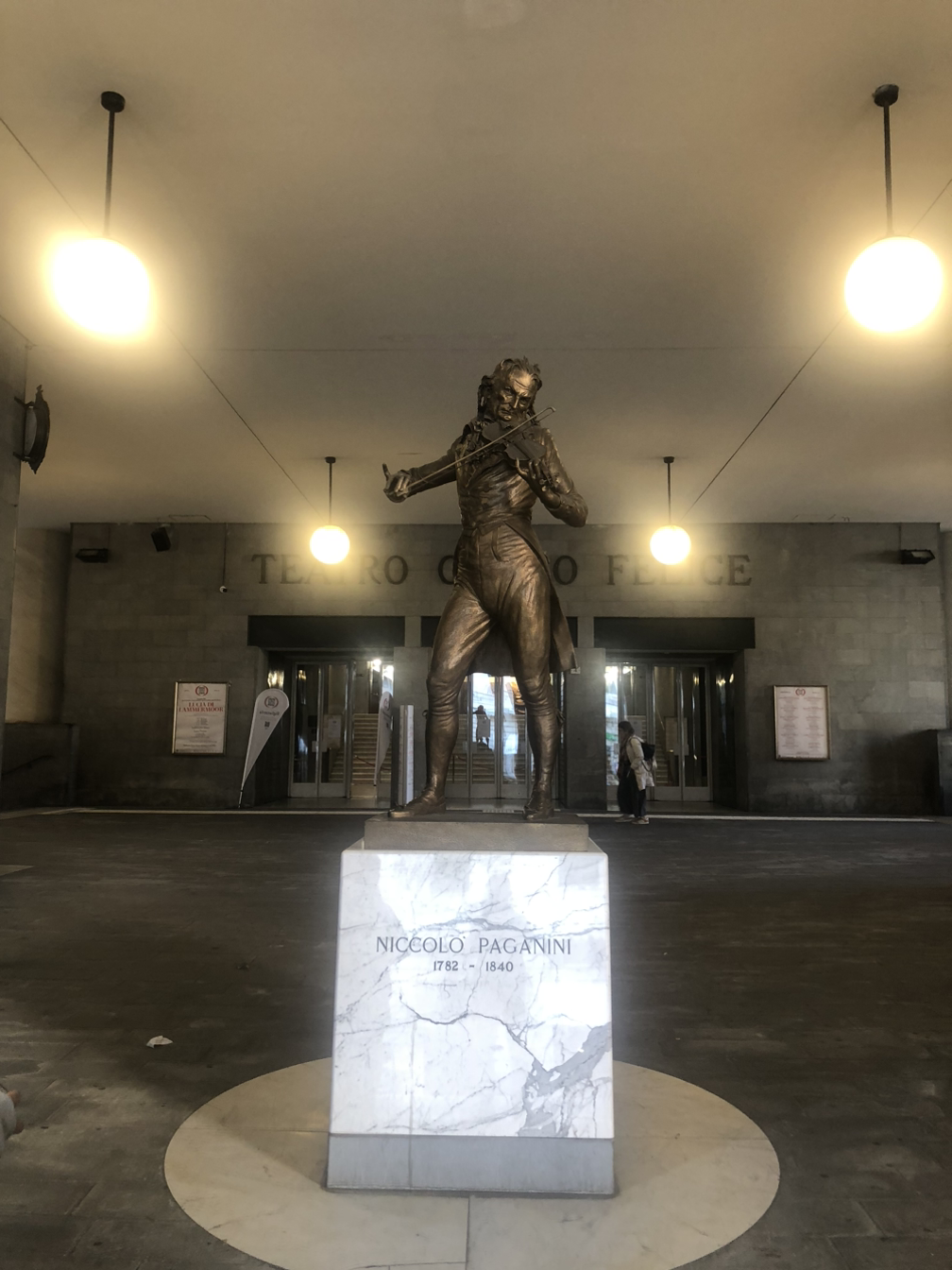 역사상 최고의 바이올리니스트. 파가니니도 제노바 출신인데, 그는 콜럼버스와 달리 제노바에 오랫동안 머물렀다. 안타까운 건 그가 숨을 거둔 뒤에 꽤 오랫동안 성당에 묻히지 못했는데, 이는 그가 악마와 거래를 했다는 루머 때문이었다. 악마와 거래를 할 정도의 바이올린 실력이라, 가늠은 가지 않지만 대단했던 모양이다. 결국 그는 고향의 교회에 묻히지 못했고, 파르마의 묘지에 묻혔다. 그의 바이올린은 시내에 있는 옛 궁전에 전시되어 있는데, 무지했던 지라 직접 보지는 못했다.