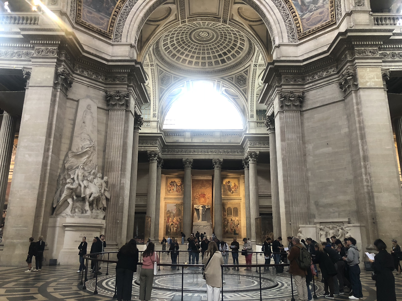 내가 진짜 파리를 잘 아는 것이 맞나 싶을 정도로, 팡테옹은 정말 들어가서 볼 가치가 있는 장소였다. 들어가자마자 푸코의 진자가 관람객들을 반긴다. 푸코는, 지구의 자전을 증명하기 위해 고안해낸 실험 장치를 이곳 팡테옹에서 1851년 설치하였고, 그 모습이 지금도 간직되어 있다 (물론 모조품이다).