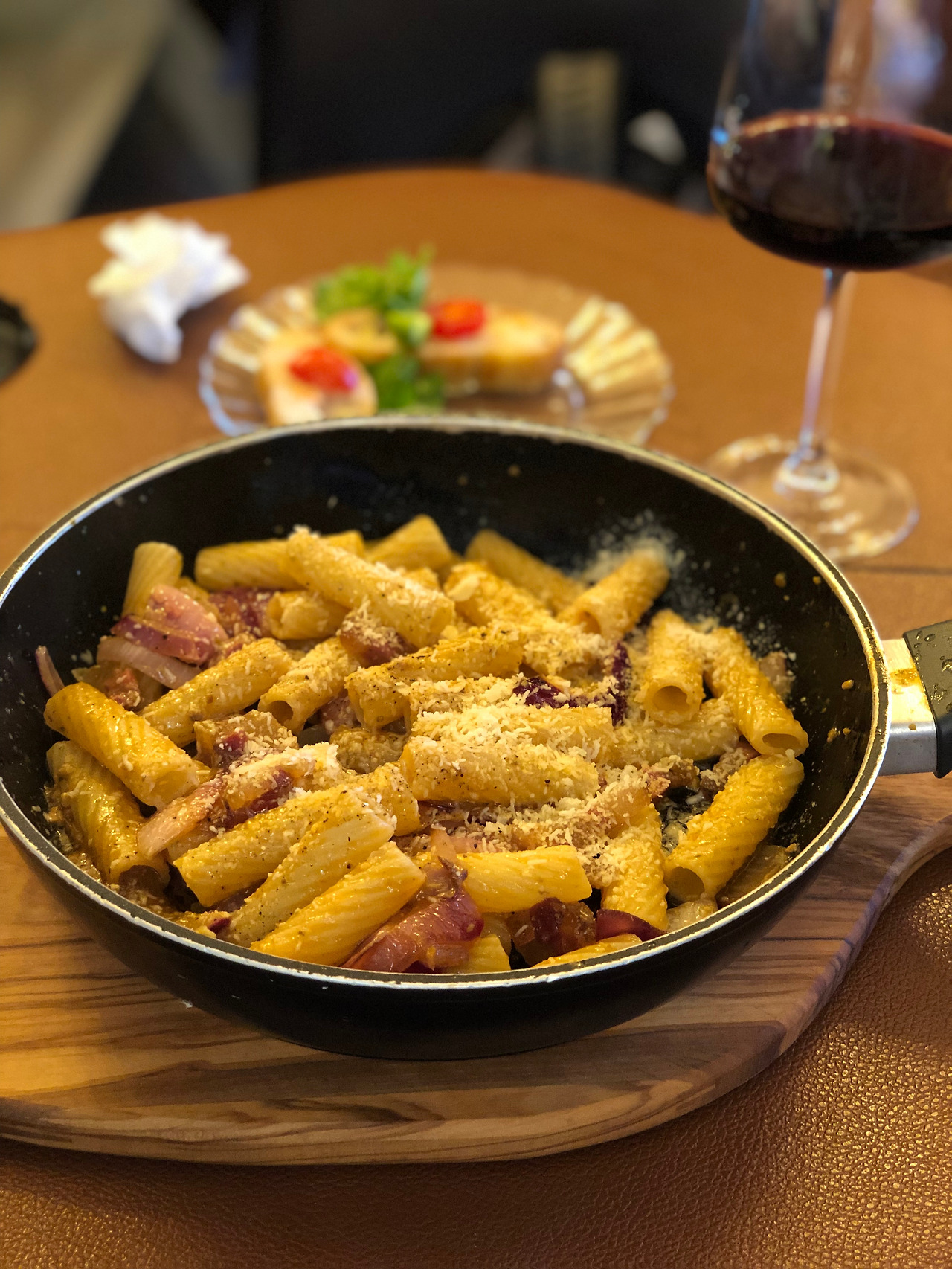 그걸 옆에서 보던 미국인은 그가 하는 말을 알아듣냐고 물어 이태리 친구 때문에 이태리어를 아주 조금 안다고만 했다. 그렇게 먹은 아마트리치아나는 아주 훌륭했다. 빵으로 소스를 조금도 남기지 않고 먹었는데, 그가 그릇을 치울 때 스카르페타라고 말하니, 기특해 했다.