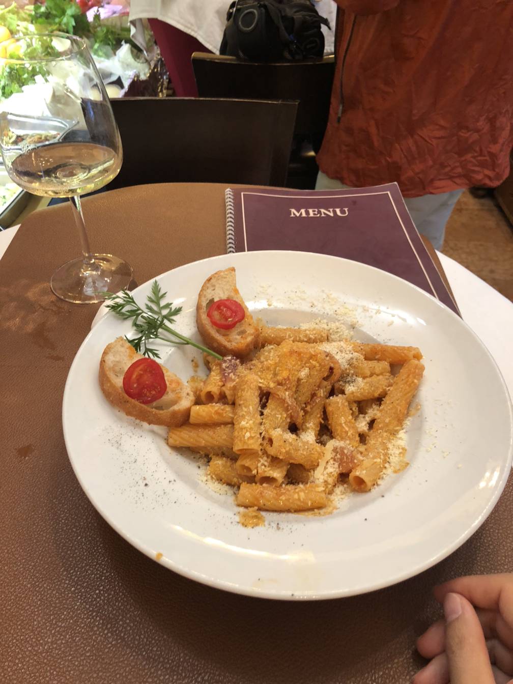 밥때가 되어 어제 갔던 이태리 식당을 다시 갔다. 이태리 사장에게 그냥 아무거나 달라고 했는데, 풀리아 (바리가 있는 지방) 스타일 파스타를 만들어줬다. 그리고 빵도 세 조각 서비스로 줬다.