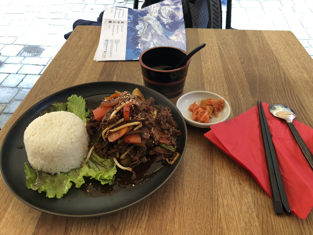 일어나고 온종일 제대로 먹질 않아서 해장할 겸 식사할 곳을 찾는데 한국 식당이 보인다. 국물 있냐고 물었는데, 국물은 없고 밥을 시키면 미소 된장국을 준다고 했다. 매콤한 불고기를 시켰는데, 밥도둑이어서 추가 공깃밥까지 시켜서 싹싹 긁어먹었다.
