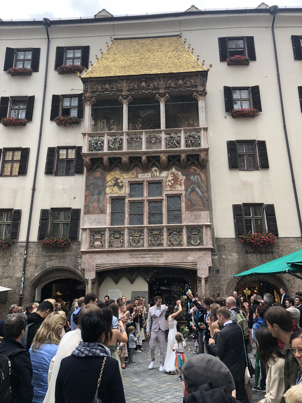 인스부르크에서 그를 지금까지 추앙한 이유 중 하나는, 시내 중앙에 지금도 인스부르크의 랜드마크인 황금 지붕 건물을 만들었기 때문이다. 처음 볼 때는, 저게 왜 유명한 거지 싶었는데, 지나가면서 보면 볼수록 꽤 매력적인 건축물이었다. 건축물 뒤로는 알프스가 보이는데... 서울로 따지면 광화문 같은 셈이다.