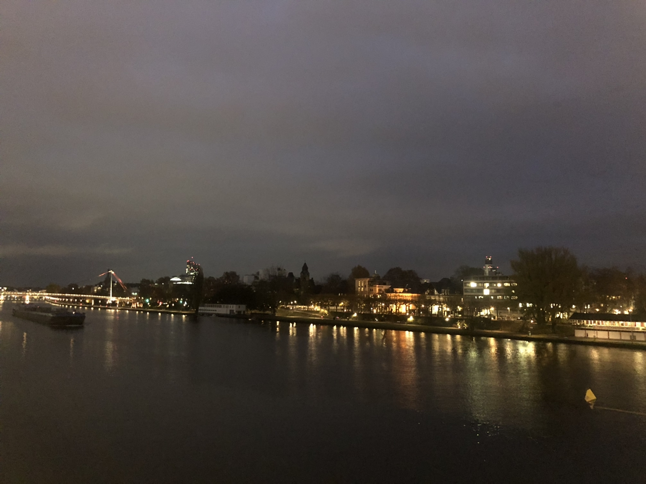 세 번째 방문이지만, 올 때마다 시간 여유가 없어 시내만 잠깐 훑어보고 떠난다. 그렇다고 더 오래 있고 싶거나, 유달리 뭔가 하고 싶진 않다. 그래도, 이렇게 흐린 날에도, 밤이 되니 도시의 화려한 불빛이 멋진 야경을 선사한다. 저멀리 보이는 구시가지. 그리고 저 화려한 불빛을 보니, 독일, 크게는 유럽을 움직이는 경제의 큰손이 저기 있구나 싶다.